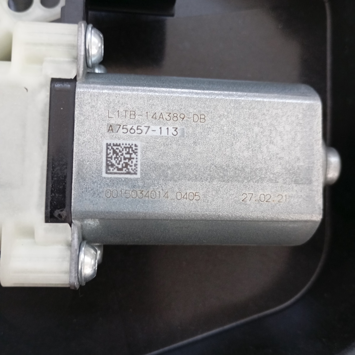 Meccanismo alzacristallo originale per la porta posteriore destra, completo di motore elettrico, smontato da un Ford Puma 2021. Questo ricambio OEM include i codici L1TB-S27000-CD (meccanismo) e L1TB-14A389-DB (motore), garantendo una perfetta compatibilità e integrazione con la carrozzeria del veicolo, senza necessità di modifiche.