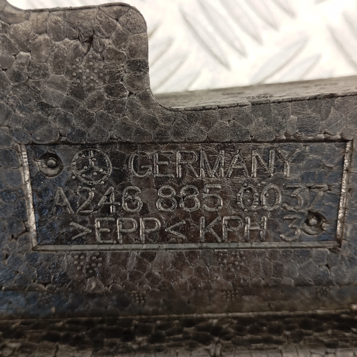 Assorbitore d’urto sinistro anteriore originale Mercedes-Benz, smontato da veicolo B-Class W246 anno 2013. Questo componente è installato all’interno del paraurti anteriore lato sinistro e ha la funzione di assorbire l’energia in caso di urti frontali leggeri, proteggendo la carrozzeria e i dispositivi montati nella zona anteriore. Realizzato in polipropilene espanso (EPP), combina leggerezza e resistenza strutturale.Ricambio noto anche come: tamponamento paraurti sinistro Mercedes B-Class, assorbitore anteriore sinistro W246, tampone protezione urti sinistro Mercedes, blocco EPP paraurti anteriore B-Class, assorbitore laterale anteriore sinistro Mercedes-Benz, elemento ammortizzante paraurti sinistro, inserto urto sinistro Mercedes OEM, tampone protezione impatto W246 sinistro, spugna antiurto sinistra Mercedes, cuscinetto protezione paraurti anteriore sinistro B-Class e a livello internazionale: front bumper absorber left, Mercedes W246 crash foam, left impact pad OEM Mercedes