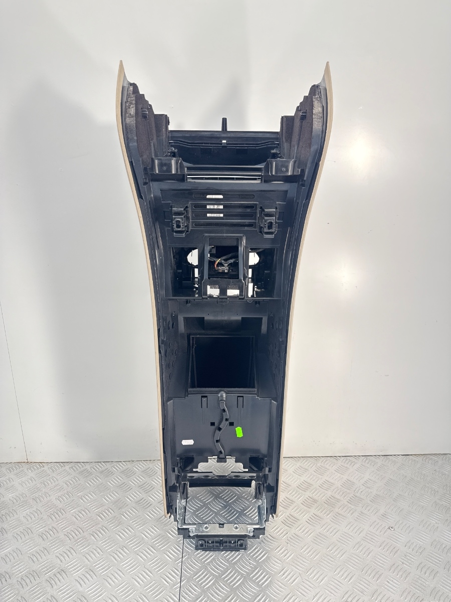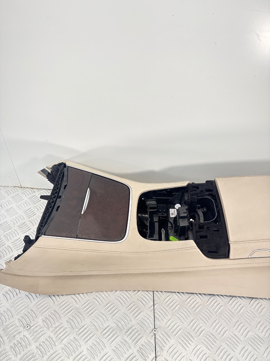 Bracciolo centrale Butterfly Mercedes Classe S W222 OEM completo di struttura console superiore, rivestimento in pelle Nappa Silk Beige e inserti in radica scura. Versione con apertura sdoppiata “Butterfly” a farfalla, progettata per offrire massimo comfort ed ergonomia. Prodotto da Faurecia per Mercedes-Benz, proveniente da veicolo del 2017.