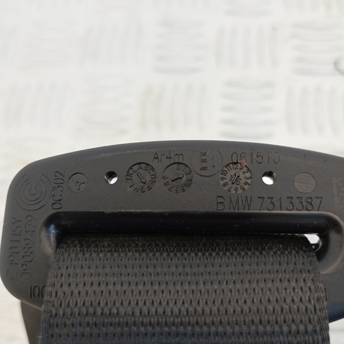 Cintura di sicurezza posteriore centrale BMW Serie 2 F45 / F46 Gran Tourer, codice OEM 7313387. Ricambio originale BMW prodotto da TRW KTI (Autoliv), specifico per il sedile posteriore centrale con arrotolatore montato nel padiglione superiore del veicolo. Questo sistema di ritenuta a 3 punti è dotato di arrotolatore automatico (retractor), pretensionatore pirotecnico e nastro in tessuto tecnico nero. La cintura garantisce la protezione del passeggero centrale posteriore in conformità con gli standard di sicurezza BMW.Ricambio noto come: cintura centrale posteriore, cintura sedile centrale, cintura padiglione posteriore, cintura 3 punti posteriore centrale, arrotolatore cintura posteriore e conosciuto a livello internazionale come: rear center seat belt, roof mounted seatbelt, center 3-point belt, BMW F45 center belt, rear middle seatbelt assembly
