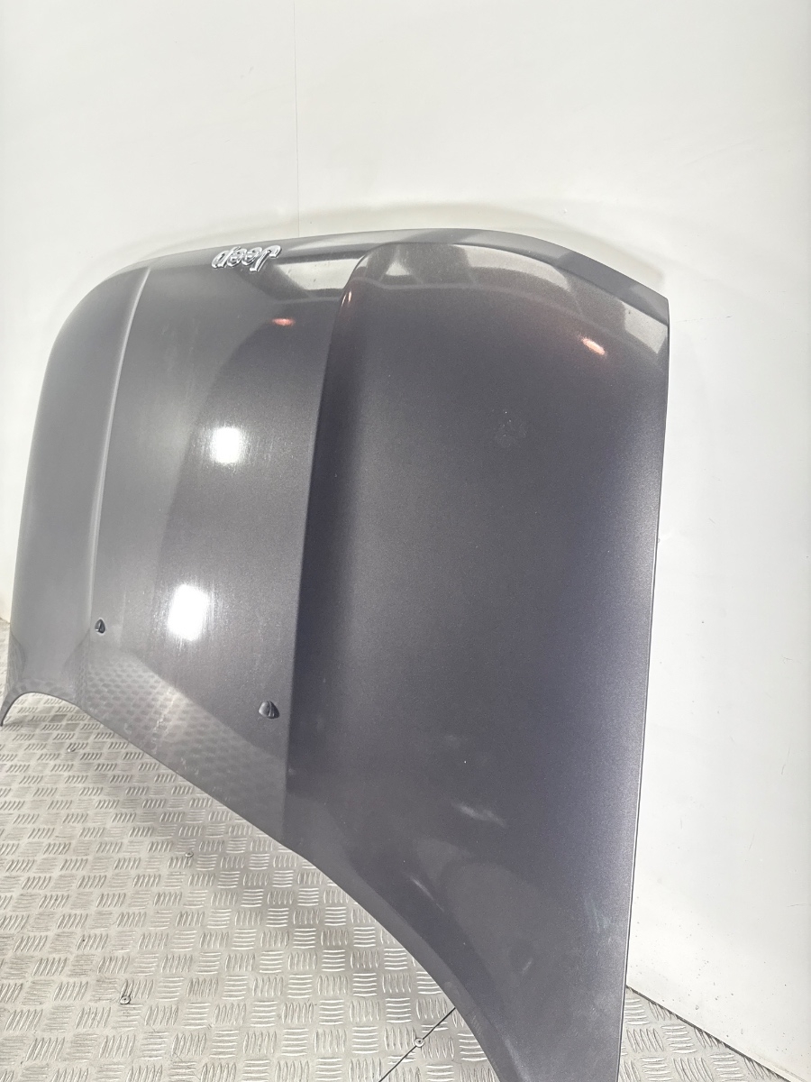 Cofano anteriore Jeep Renegade BU 2014-2018 grigio metallizzato per carrozzeria SUV 5 porte. Verniciatura grigio metallizzato con buona brillantezza e riflessi uniformi, presenti leggere velature e microsegni da utilizzo visibili in controluce.