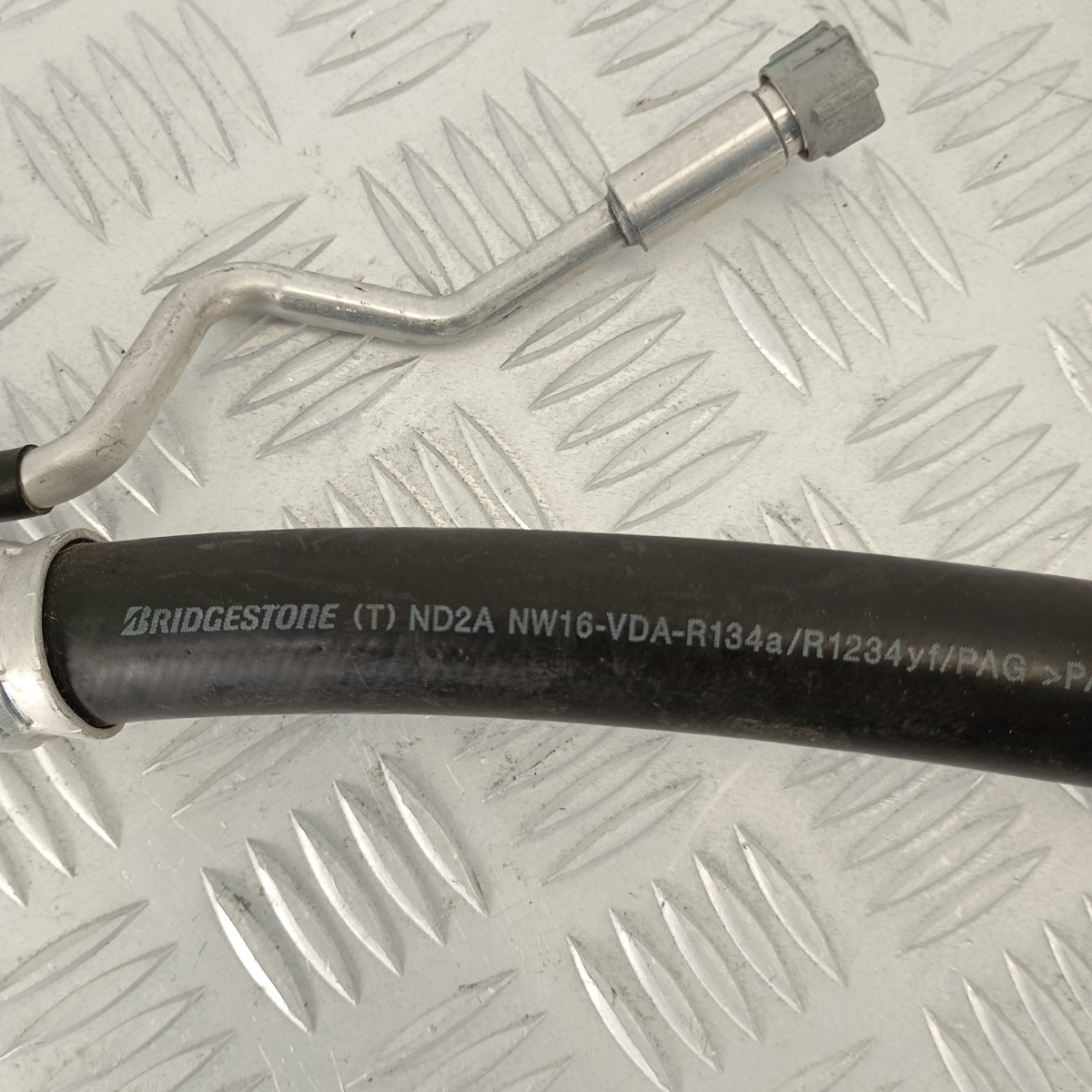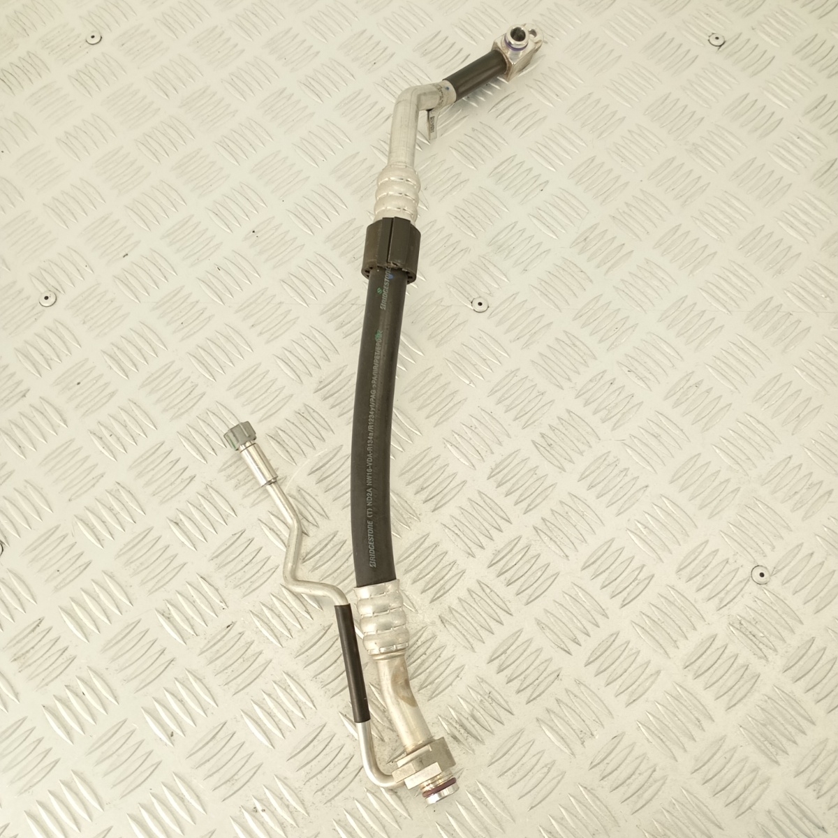 Condotta aria condizionata originale Audi, compatibile con i sistemi di climatizzazione ad alta pressione che utilizzano gas R134a e R1234yf. Prodotta da Bridgestone, questa tubazione è progettata per garantire il corretto flusso del refrigerante tra compressore e condensatore. La struttura è composta da un tratto rigido in alluminio e un tubo flessibile ad alta resistenza, uniti da raccordi sigillati progettati per resistere a pressioni elevate, vibrazioni e temperature estreme. Ricambio noto anche come: condotta AC alta pressione Audi, tubo aria condizionata Bridgestone, tubo compressore clima Audi B9, condotta gas refrigerante climatizzatore, tubazione flessibile clima S5, tubo climatizzazione Sportback, linea climatizzatore alta pressione Audi, tubo refrigerante clima R1234yf e a livello internazionale: high pressure AC pipe Audi, aircon hose Audi B9, AC compressor to condenser line Audi
