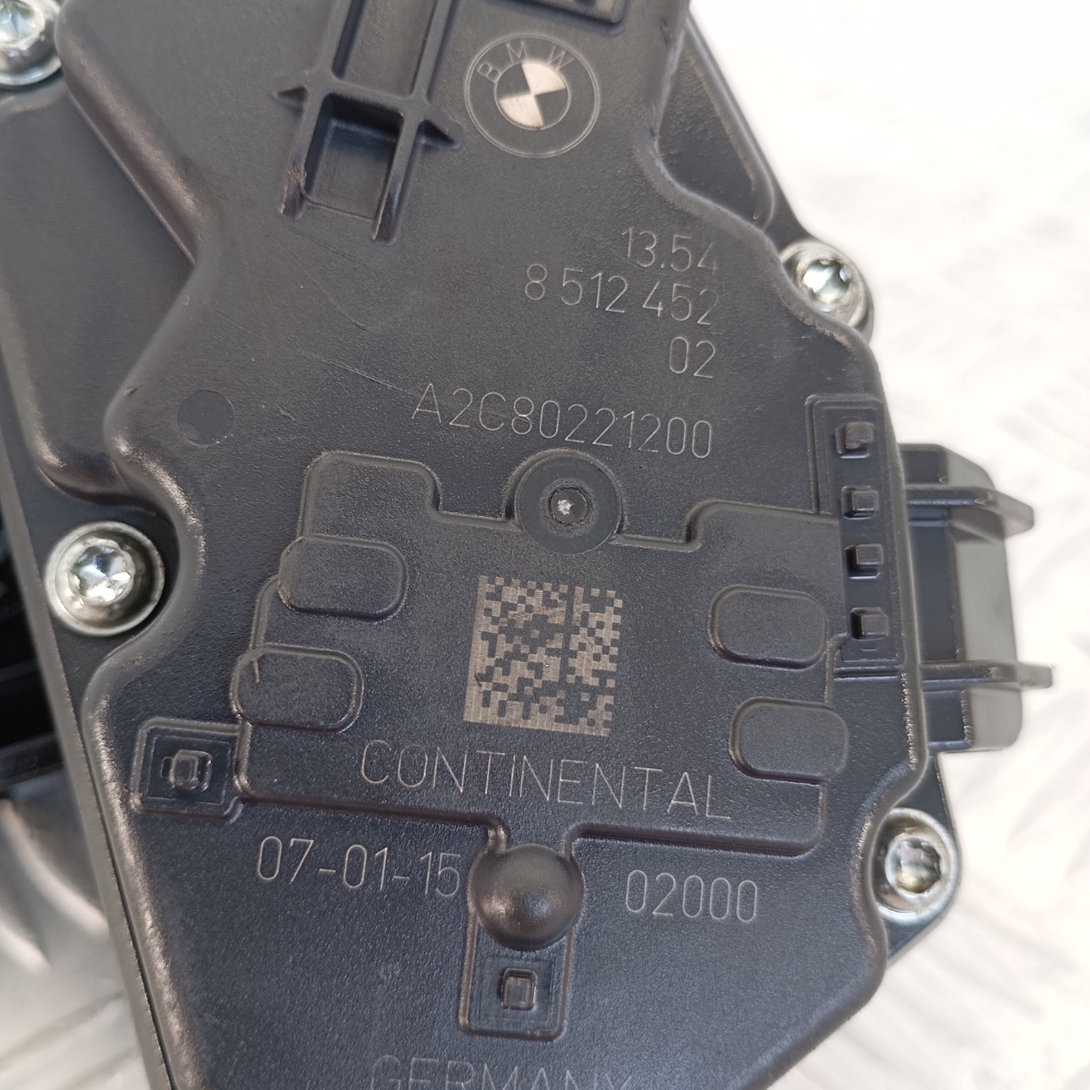 Corpo farfallato elettronico / valvola a farfalla / unità elettronica gestione aria, codici OEM 8512452-02 (BMW) e A2C80221200 (Continental). Questo ricambio originale BMW, prodotto da Continental in Germania nel gennaio 2015 e smontato da veicolo BMW Serie 2, è una componente essenziale del sistema di aspirazione. Il suo ruolo principale è quello di regolare con precisione il flusso d’aria in ingresso nel motore diesel, contribuendo all’efficienza della combustione, alle prestazioni e alla riduzione delle emissioni. Compatibile esclusivamente con motori diesel da 1.5 a 3.0 litri.Ricambio noto come corpo farfalla, valvola farfalla, valvola elettronica aria, throttle body, farfalla elettronica, unità controllo aria, Continental throttle, BMW corpo farfalla diesel