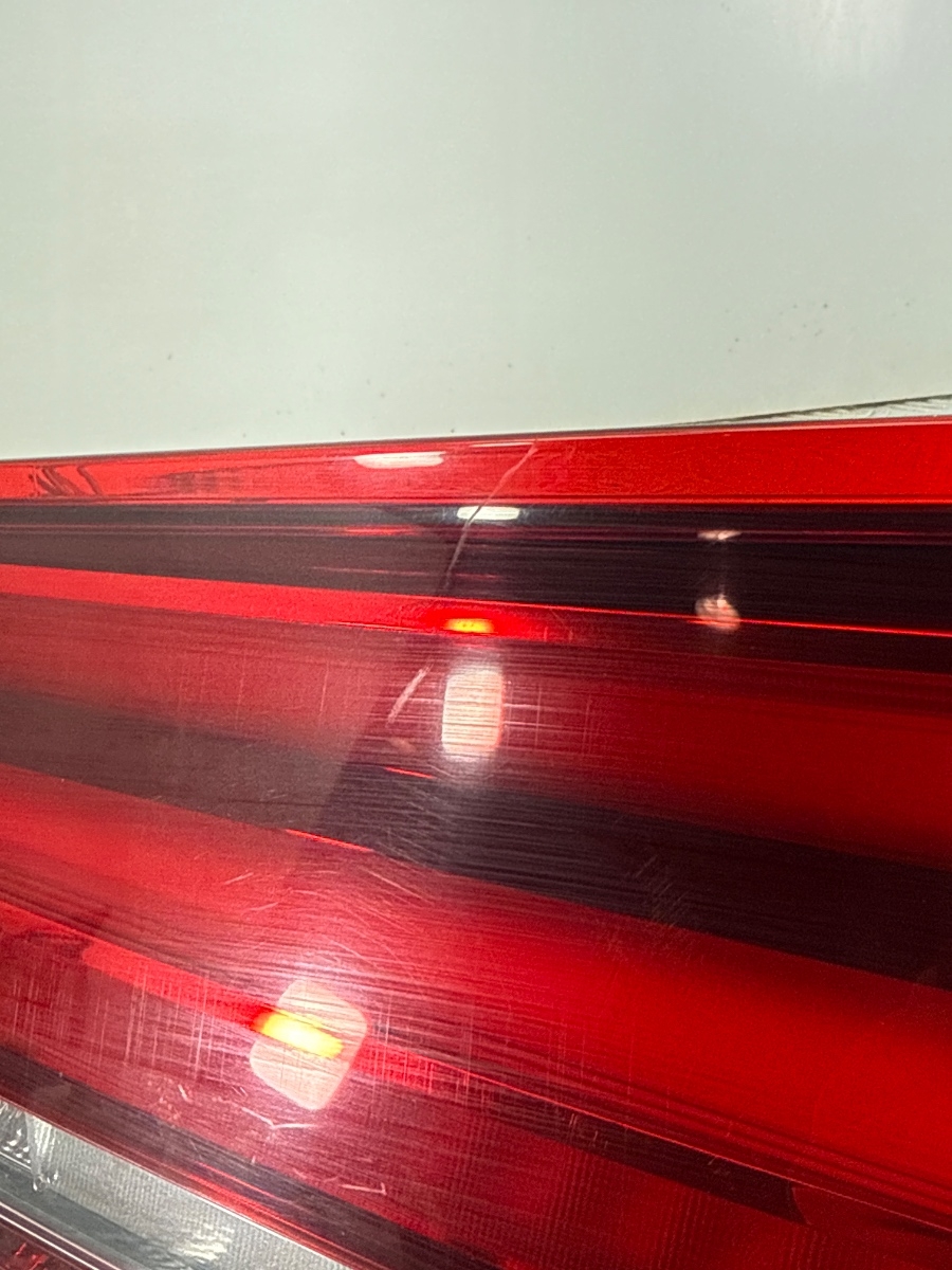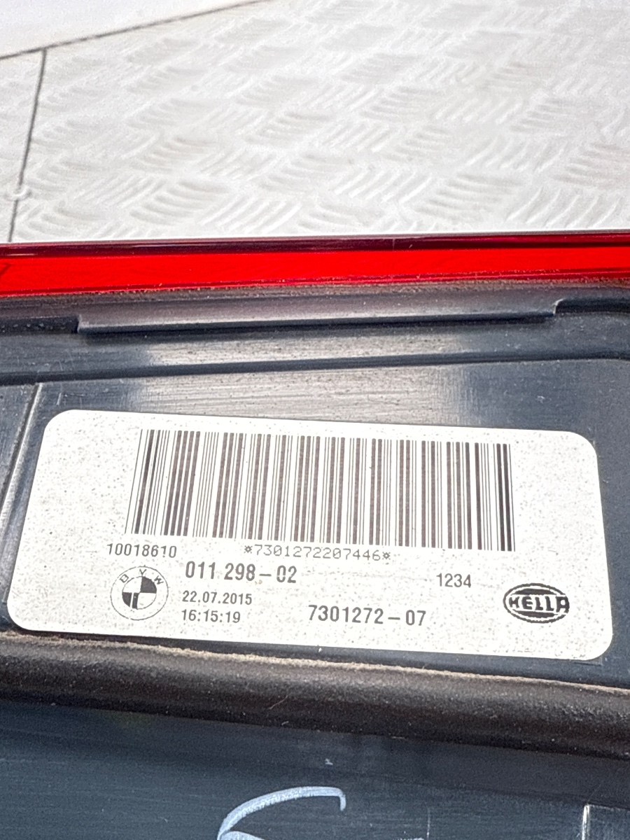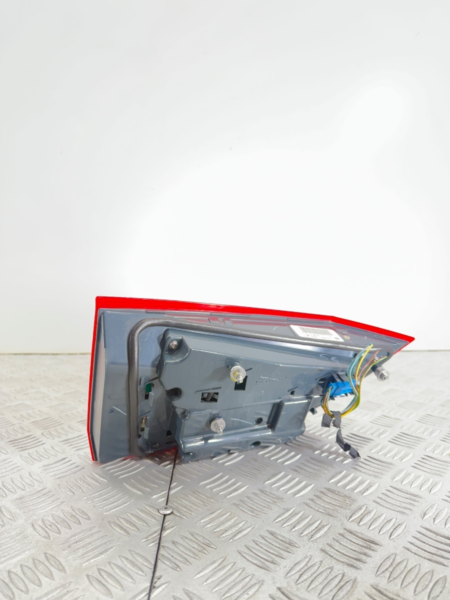 Fanale posteriore interno destro BMW X5 F15 montato sul portellone posteriore. Il gruppo ottico presenta lente rossa con fascia centrale trasparente ed è destinato al lato destro interno del portellone. Il corpo posteriore è completo di supporti e cablaggio visibile, come mostrato nelle immagini reali.Questo fanale, noto anche come luce posteriore interna, stop interno destro o gruppo ottico portellone, è stato smontato da veicolo BMW X5 F15 ed è pronto per l’installazione su configurazioni compatibili. La lente mostra piccoli graffi superficiali leggeri, coerenti con il normale utilizzo.