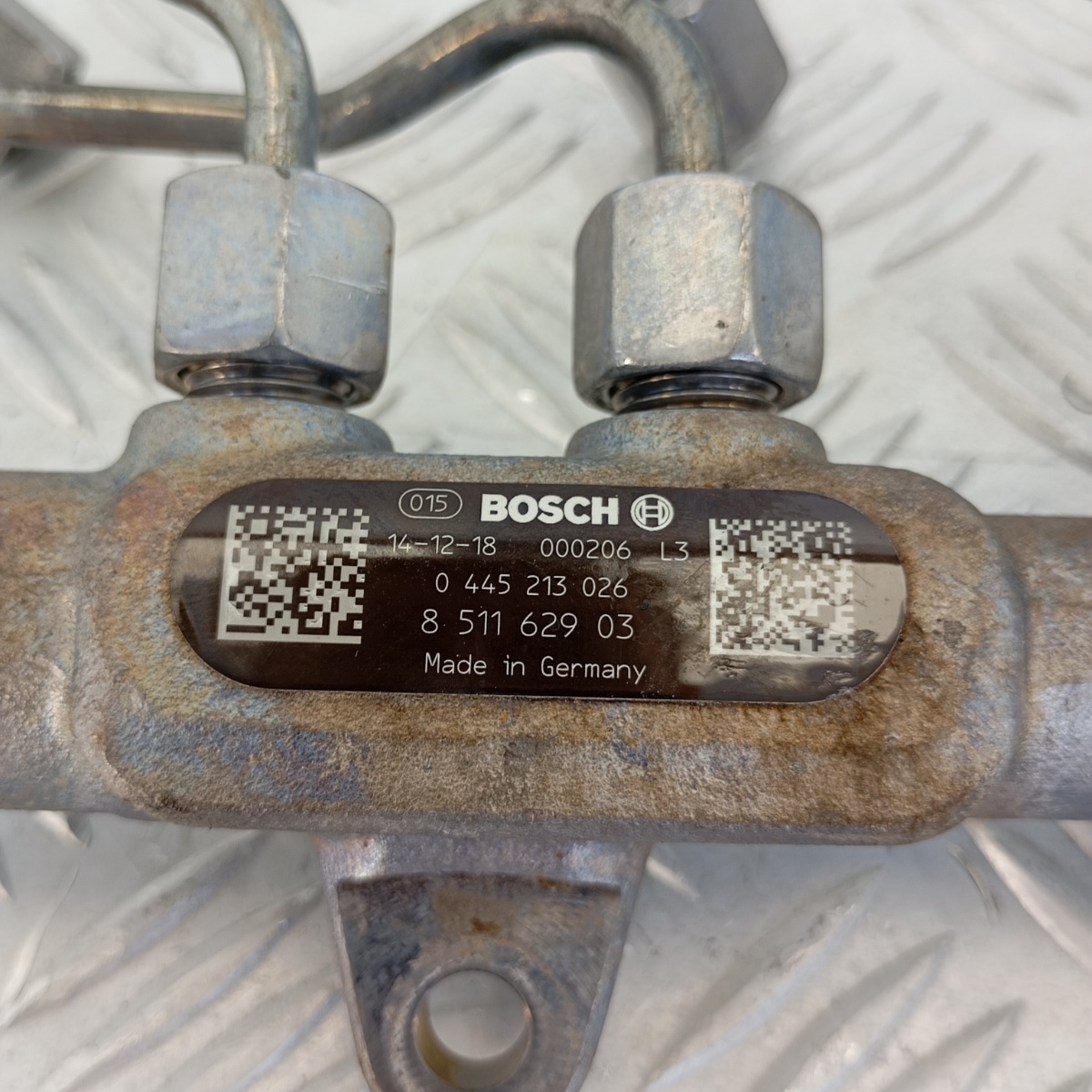 Flauto iniezione Common Rail originale BMW, codice OEM 851162903, smontato da BMW Serie 1 F20 con motore 1.5 Diesel (codice motore B37), perfettamente funzionante. Il componente è prodotto da Bosch in Germania, con riferimento Bosch 0445213026, ed è dotato di sensore/regolatore di pressione del carburante Bosch 0281002949 già montato.Il flauto è una parte fondamentale del sistema di iniezione diesel: raccoglie il carburante in alta pressione proveniente dalla pompa ed effettua una distribuzione precisa agli iniettori, garantendo efficienza, prestazioni ottimali e rispetto delle normative antinquinamento Euro 6.Ricambio noto anche come: flauto iniezione gasolio, collettore alta pressione, condotto iniezione diesel, rail iniezione ed è onosciuto a livello internazionale come: common rail fuel rail, diesel injector manifold, high pressure fuel rail, Bosch rail