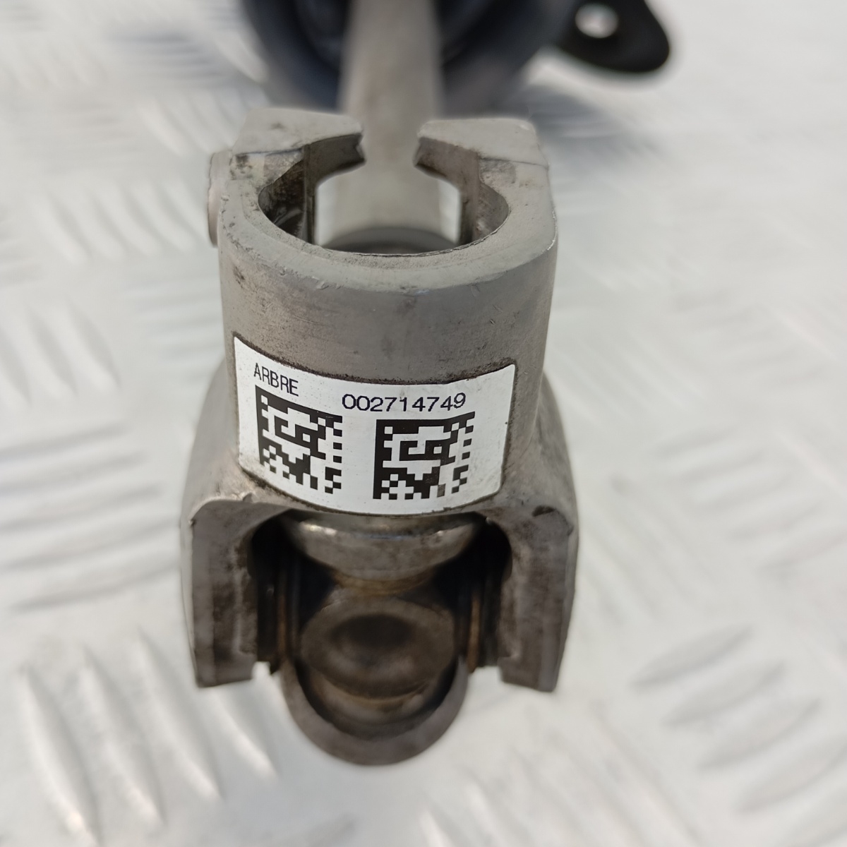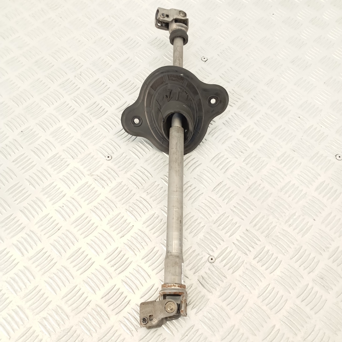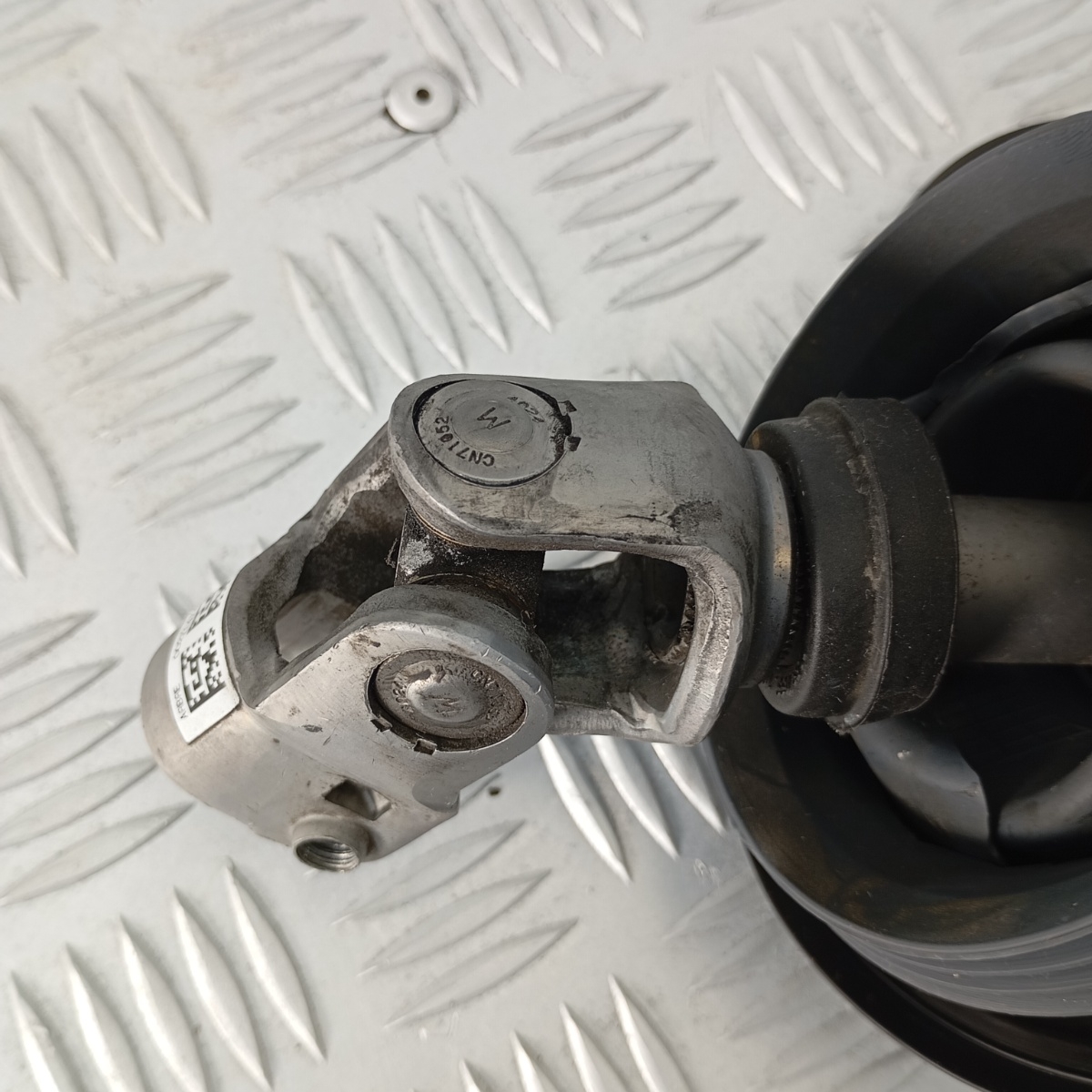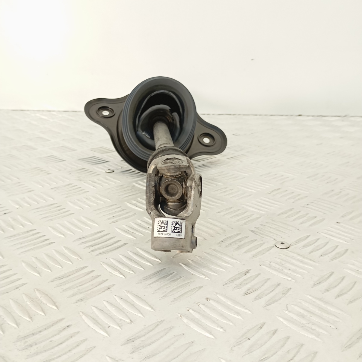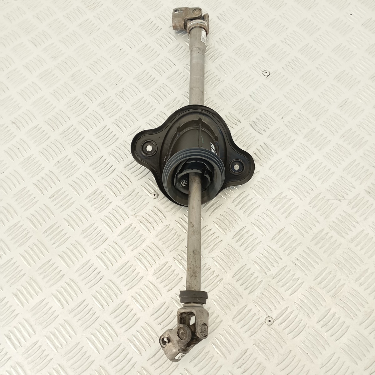 Il componente collega il piantone sterzo alla scatola guida, trasmettendo in modo preciso e sicuro i comandi di sterzata. È realizzato in acciaio zincato, con giunto cardanico snodato, supporto centrale in gomma e flangia di fissaggio.