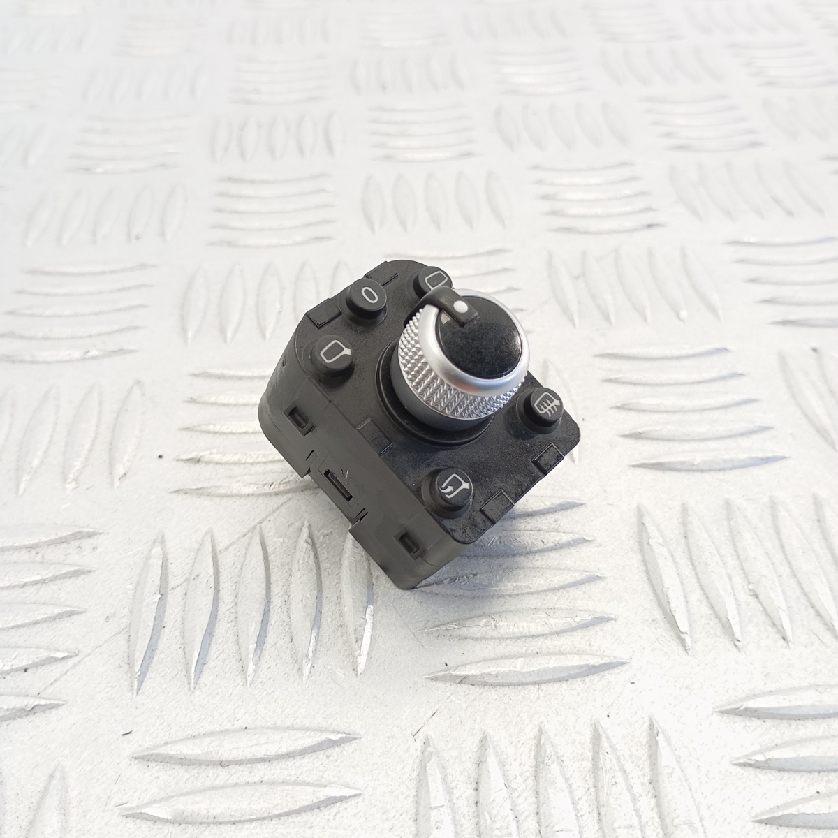 Interruttore regolazione specchietti retrovisori originale Audi, smontato da veicoli di ultima generazione. Codice OEM 4M0 959 565 Q, posizionato sul pannello porta lato guida.Questo comando integra funzioni di regolazione elettrica degli specchi retrovisori esterni, selezione specchio destro/sinistro e regolazione angolare, con in più funzione di riscaldamento specchi retrovisori.Ricambio noto anche come: comando regolazione specchietti Audi, pulsante specchietti elettrici Audi, selettore specchi retrovisori Audi, interruttore specchi Audi, e a livello internazionale come: Audi mirror adjustment switch, Audi side mirror control switch.
