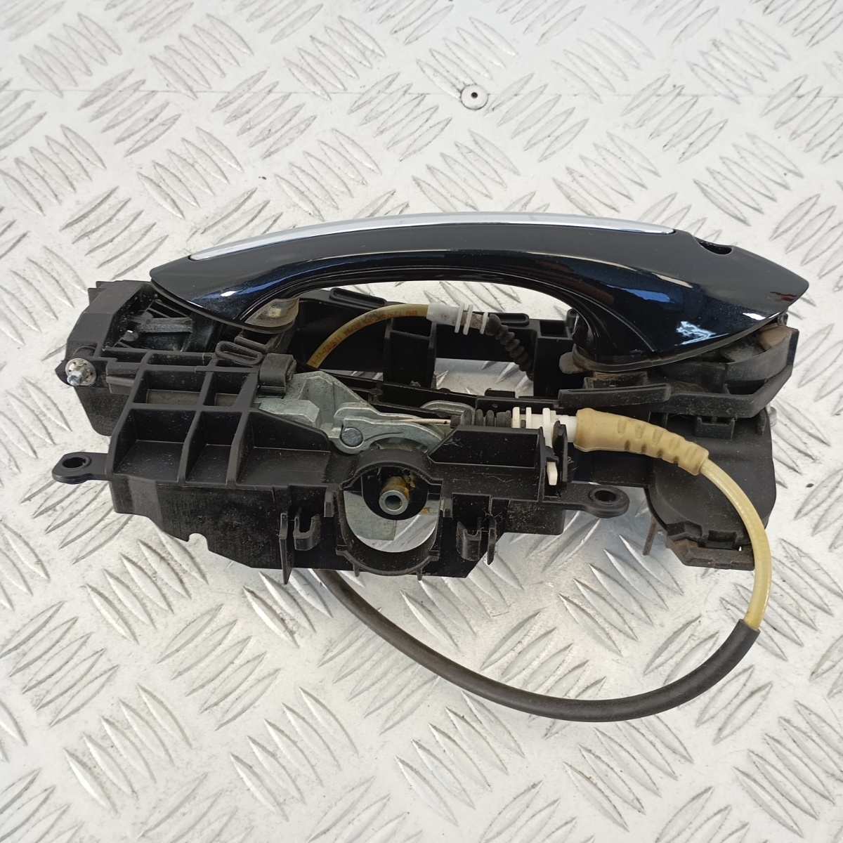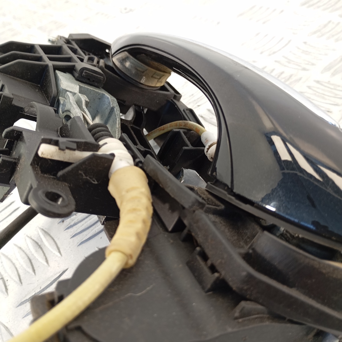 Maniglia porta anteriore sinistra originale BMW, smontata da Serie 5 F10 2015. Ricambio completo con supporto interno, meccanismo di apertura, microinterruttore integrato e cablaggio a 2 pin. Codice OEM X1717564312. Realizzata in plastica tecnica PA6-GF60 rinforzata con fibra di vetro e inserti in metallo zincato, presenta finitura nero lucido con inserto cromato. Prodotto da HUF per BMW, garantisce il corretto funzionamento del sistema apertura porta lato guida con tecnologia Comfort Access.Ricambio noto anche come: maniglia portiera sinistra anteriore, impugnatura porta lato guida, leva apertura porta sinistra conducente, maniglia Comfort Access BMW, gruppo maniglia anteriore sinistra F10, maniglia esterna F11 Touring, comando apertura porta sinistra BMW, maniglia smart entry sinistra, supporto maniglia sinistra OEM, maniglia sinistra completa con microinterruttore e a livello internazionale: driver door handle BMW, left front door grip F10, Comfort Access handle BMW F11