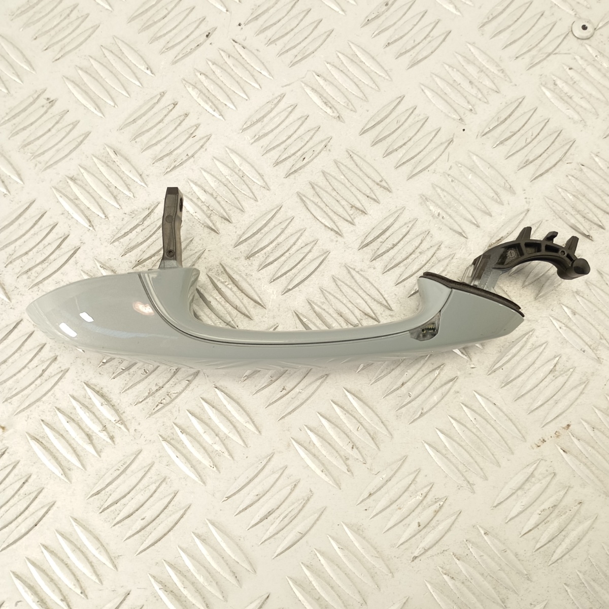 Maniglia porta anteriore sinistra originale, smontata da BMW X4 G02. Ricambio completo, verniciato grigio metallizzato chiaro, dotato di staffa inter…