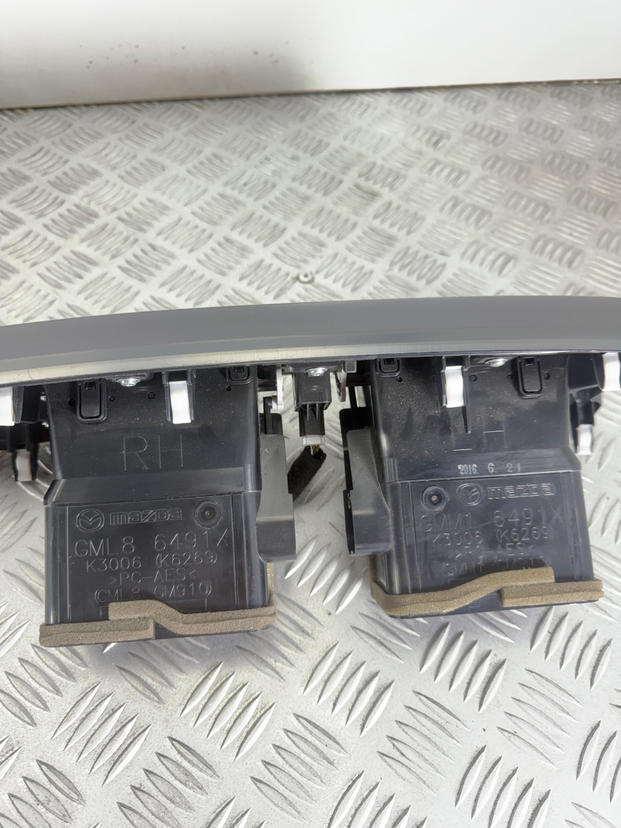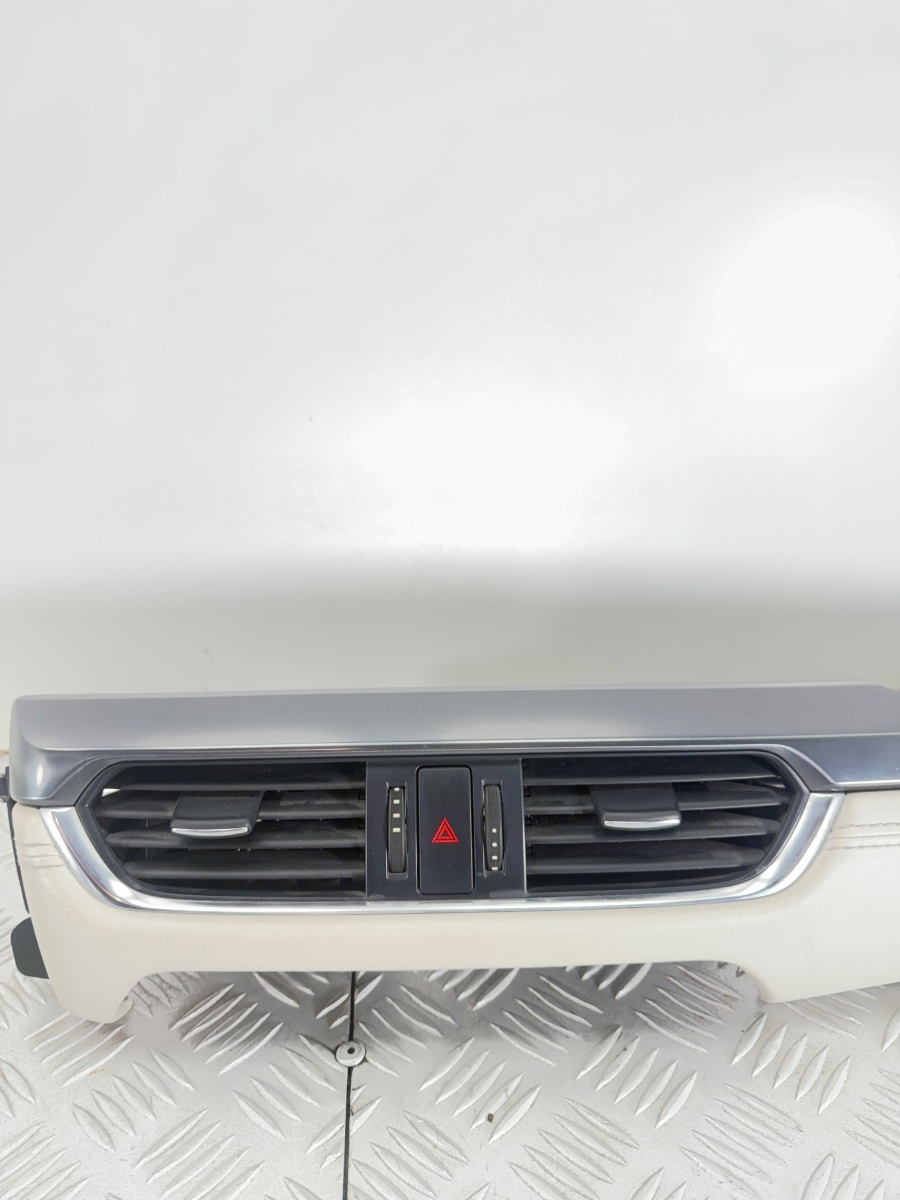 Modanatura cruscotto centrale Mazda 6 GJ GL con bocchette aria centrali e sede pulsante emergenza, smontata da veicolo usato.Questo rivestimento cruscotto centrale è progettato per integrarsi perfettamente nella plancia originale Mazda 6, mantenendo design, colore e finiture di serie.La cornice cruscotto con diffusori aria è realizzata con struttura rigida e rivestimento in materiale morbido con inserto chiaro, ideale per interni beige o avorio.Il pannello centrale plancia consente la corretta canalizzazione dell’aria e l’alloggiamento del pulsante hazard, risultando adatto a interventi di ripristino estetico o sostituzione di modanature danneggiate.