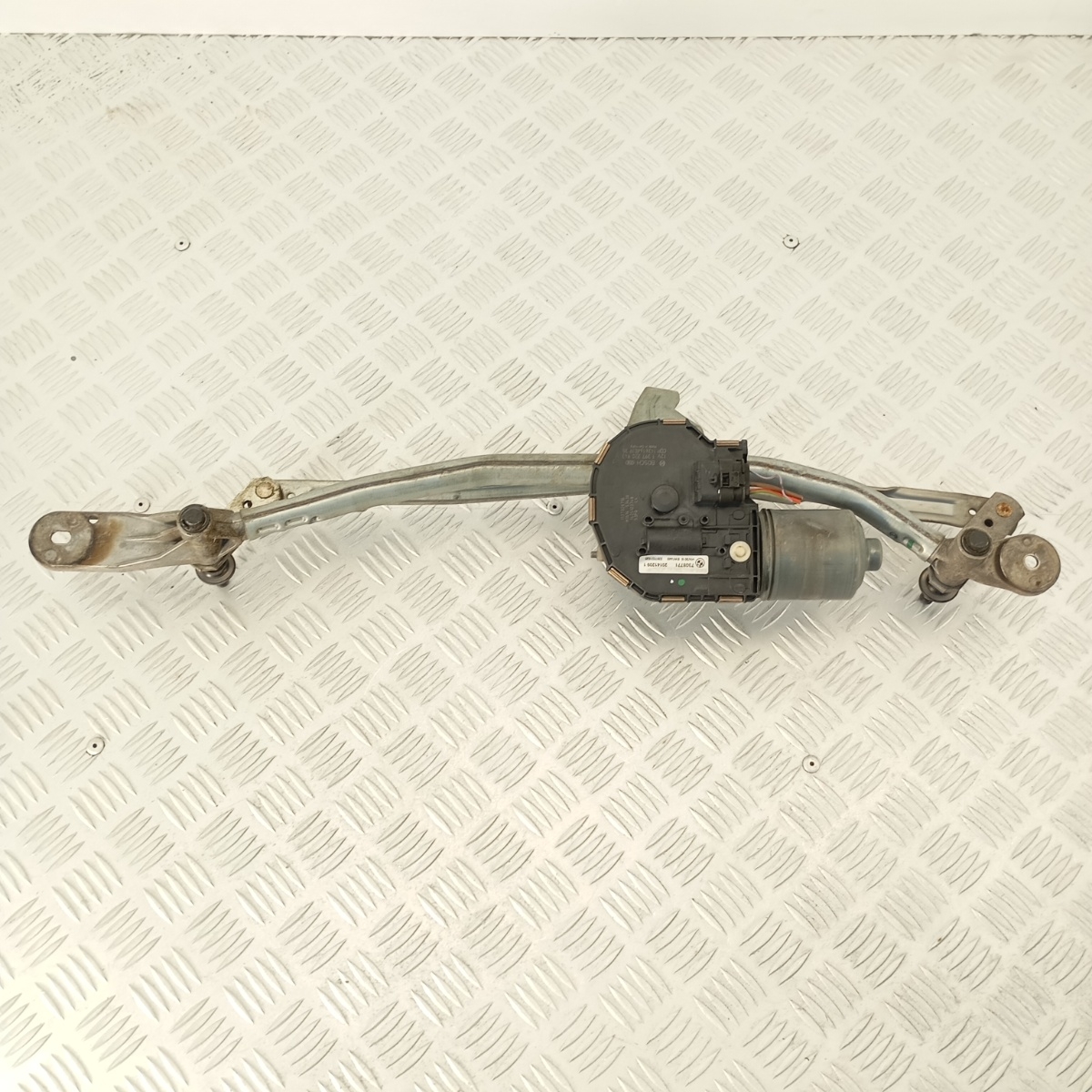 Motorino tergicristallo anteriore originale Bosch, smontato da BMW Serie 5 F11 Touring anno 2014, completo di meccanismo e bracci trasmissione tergi.Il gruppo è compatibile con impianto tergicristallo standard a 12V installato su parabrezza delle versioni Berlina e Station Wagon.