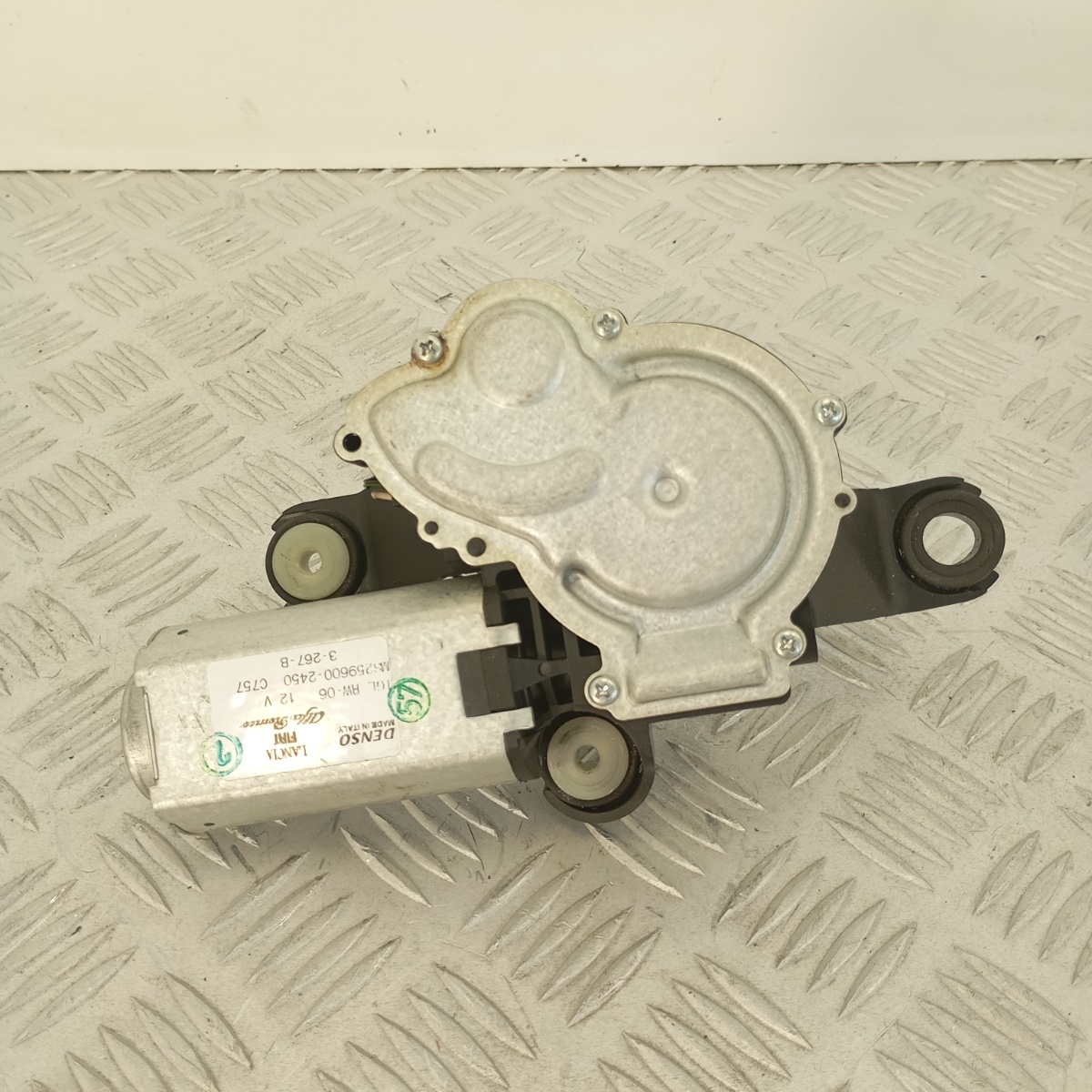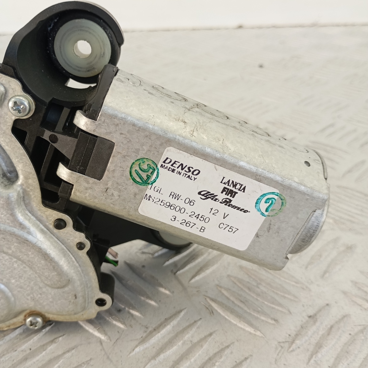 Motorino tergilunotto posteriore originale Denso, codice OEM MS259600-2450, smontato da veicolo Fiat gruppo FCA. Il ricambio è completo, perfettamente funzionante e pronto per il montaggio. Prodotto da Denso in Italia per primo impianto, compatibile con diversi modelli Fiat, Alfa Romeo e Lancia dotati di lunotto tergivetro elettrico. Struttura robusta con ingranaggi interni silenziati, albero filettato centrale e supporto a 3 punti di fissaggio. Connettore elettrico a 3 pin. Ricambio noto anche come: motorino tergicristallo posteriore Fiat Punto, attuatore tergilunotto Alfa MiTo, motorino tergi posteriore Lancia Ypsilon, motorino tergivetro MS259600-2450, motorino tergilunotto Fiat 199, motorino tergilunotto originale Denso 3-267-B, attuatore tergicristallo posteriore OEM Fiat, motorino tergiposteriore Fiat Punto Evo, tergicristallo elettrico posteriore Alfa Romeo MiTo e a livello internazionale: rear wiper motor Fiat Punto, Denso rear wiper unit Alfa MiTo, OEM rear wiper actuator Lancia Ypsilon