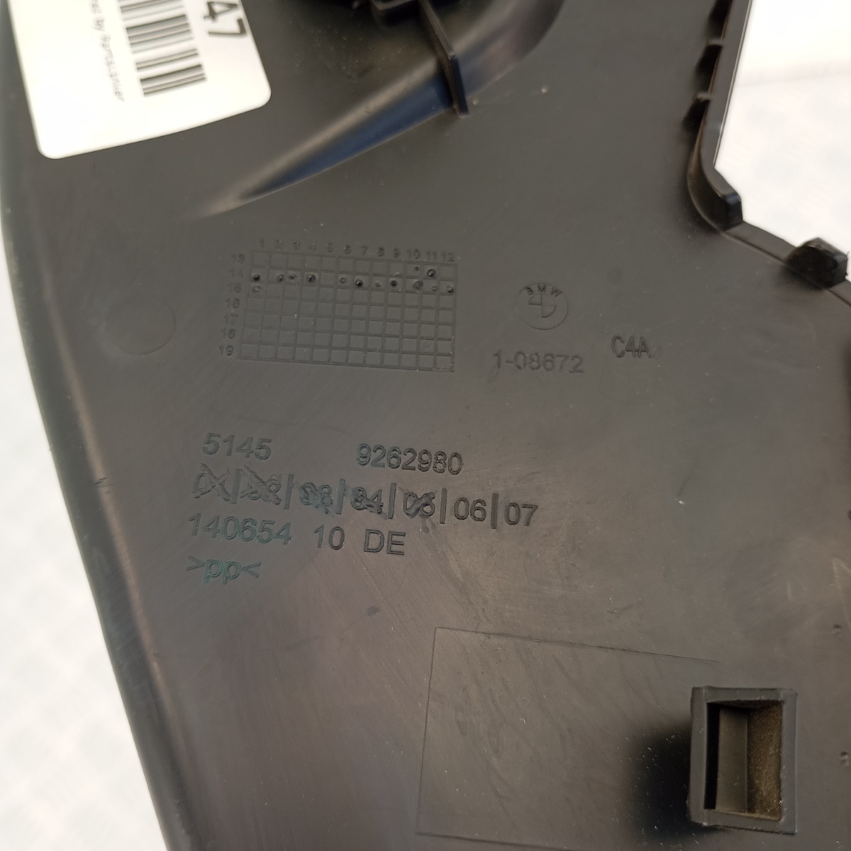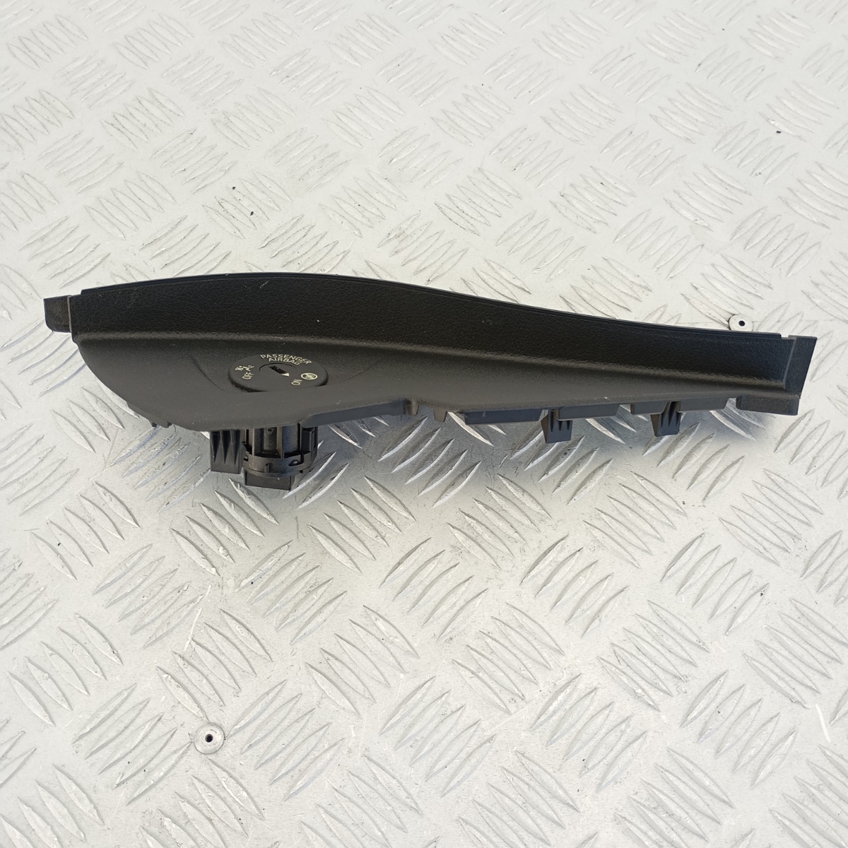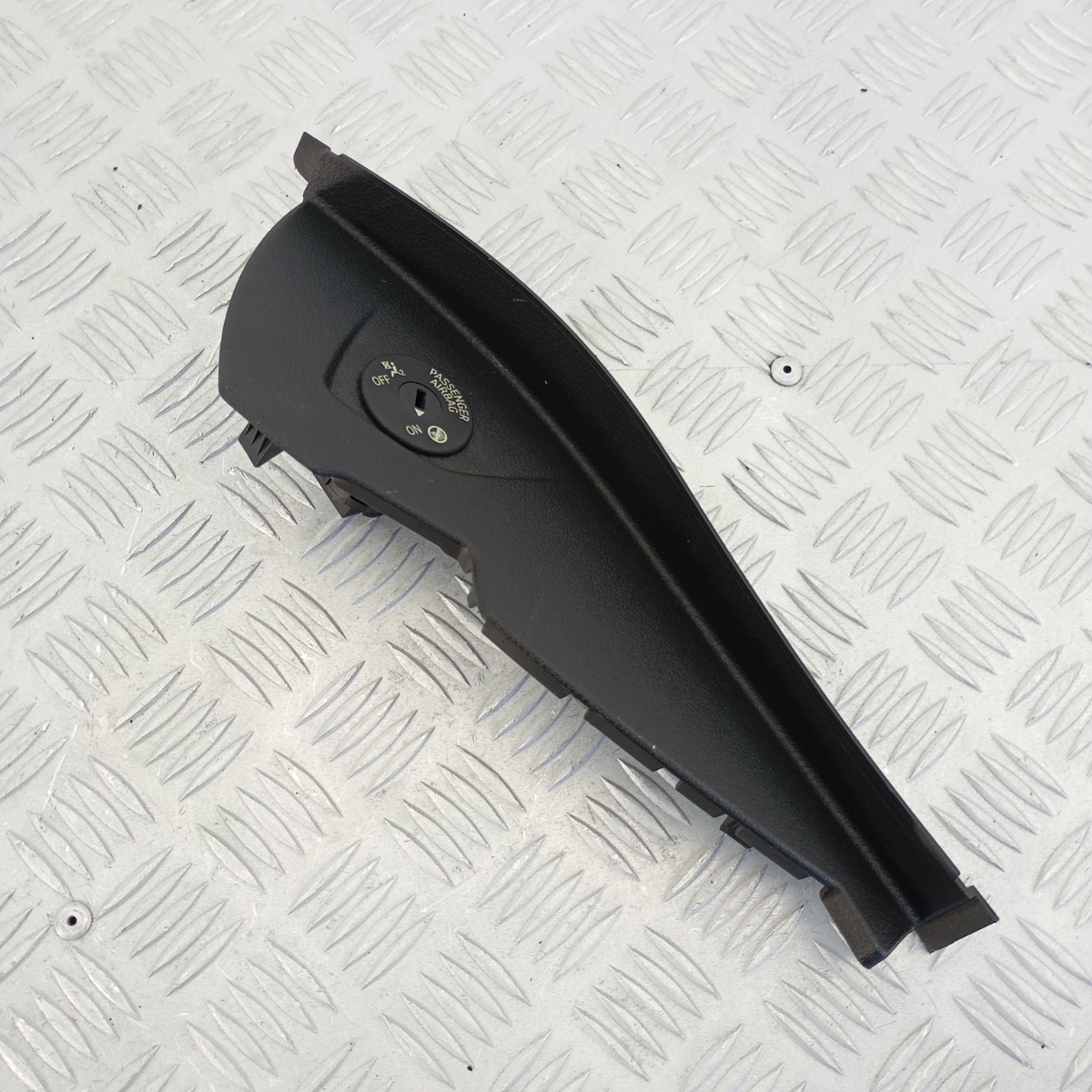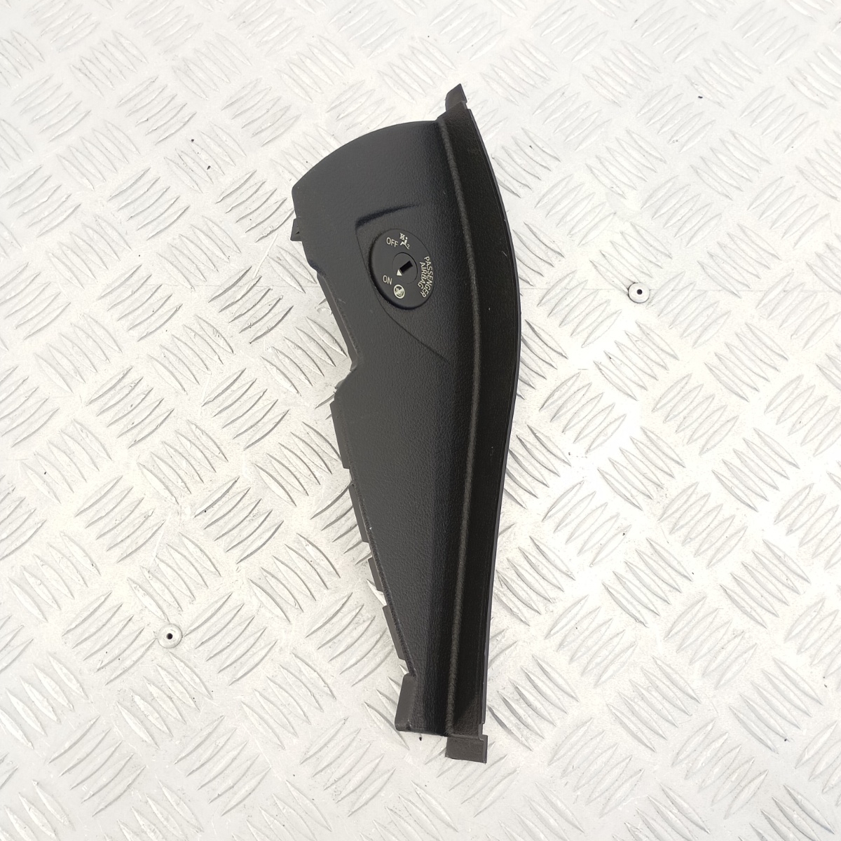 Pannello airbag passeggero BMW o pannello cruscotto destro anteriore smontato da BMW Serie 2 Active Tourer F45 216d anno 2015.Questo inserto cruscotto funge da copertura plancia lato passeggero ed è completo del modulo disattivazione airbag integrato, con funzione ON/OFF tramite chiave.Il rivestimento dashboard è progettato per alloggiare perfettamente l’interruttore di sicurezza e garantire la protezione del passeggero.Realizzato in materiale plastico PP, il pannello airbag OEM BMW presenta una superficie nera con texture originale e attacchi integri.Questo inserto laterale del cruscotto è anche chiamato mascherina airbag passeggero o plancia laterale BMW Serie 2, e rappresenta un ricambio perfetto per il ripristino estetico e funzionale del lato passeggero.Compatibile con le versioni F45 e F46, si monta senza alcuna modifica, mantenendo la piena funzionalità del airbag switch cover originale BMW.