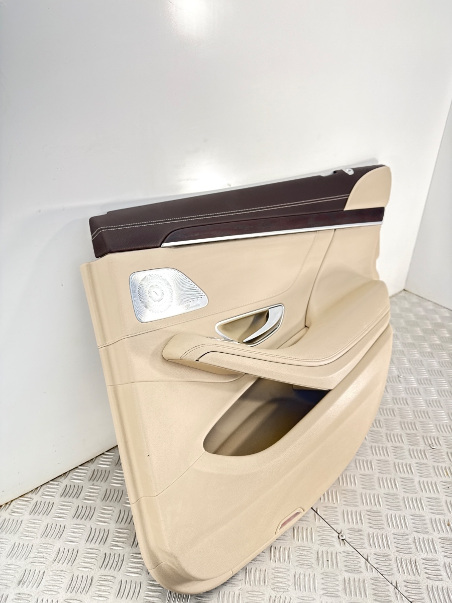 Pannello porta posteriore destra Mercedes S-Class W222 con finiture di pregio e diffusore Burmester integrato. Rivestimento in pelle beige con inserto…