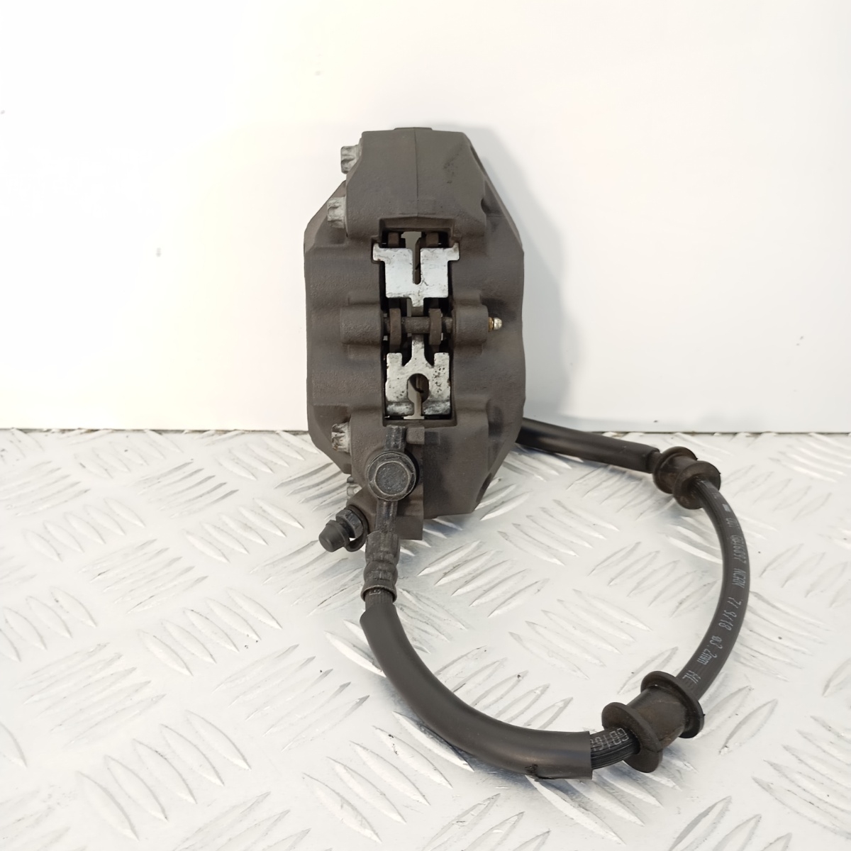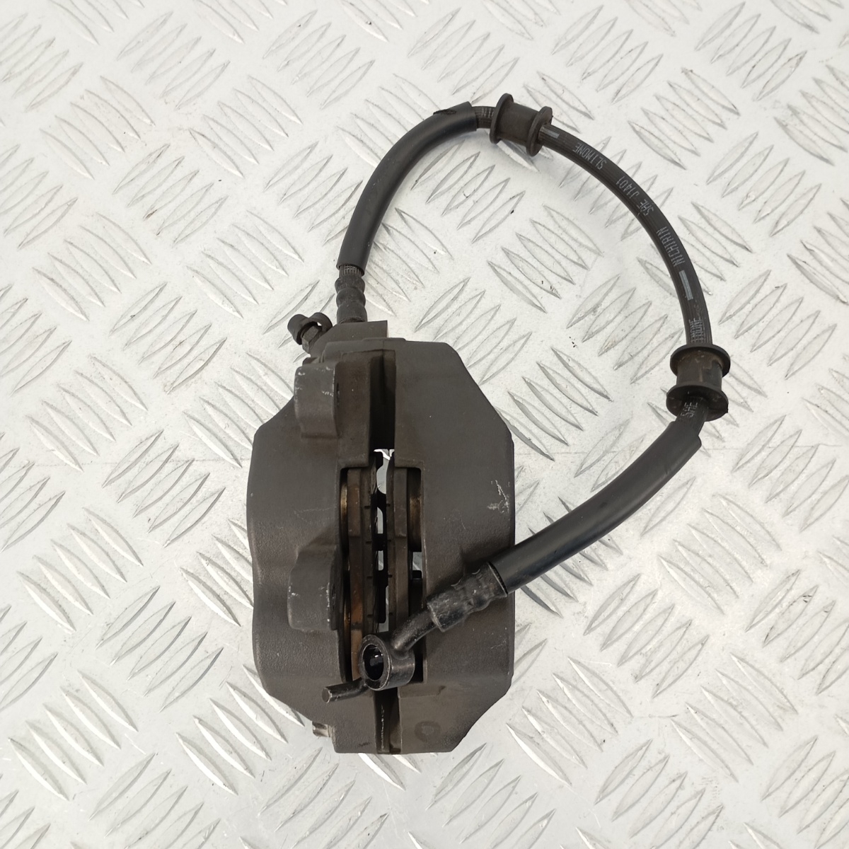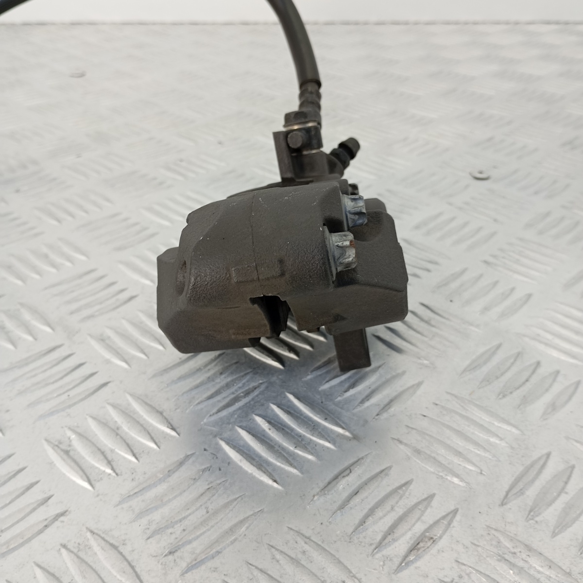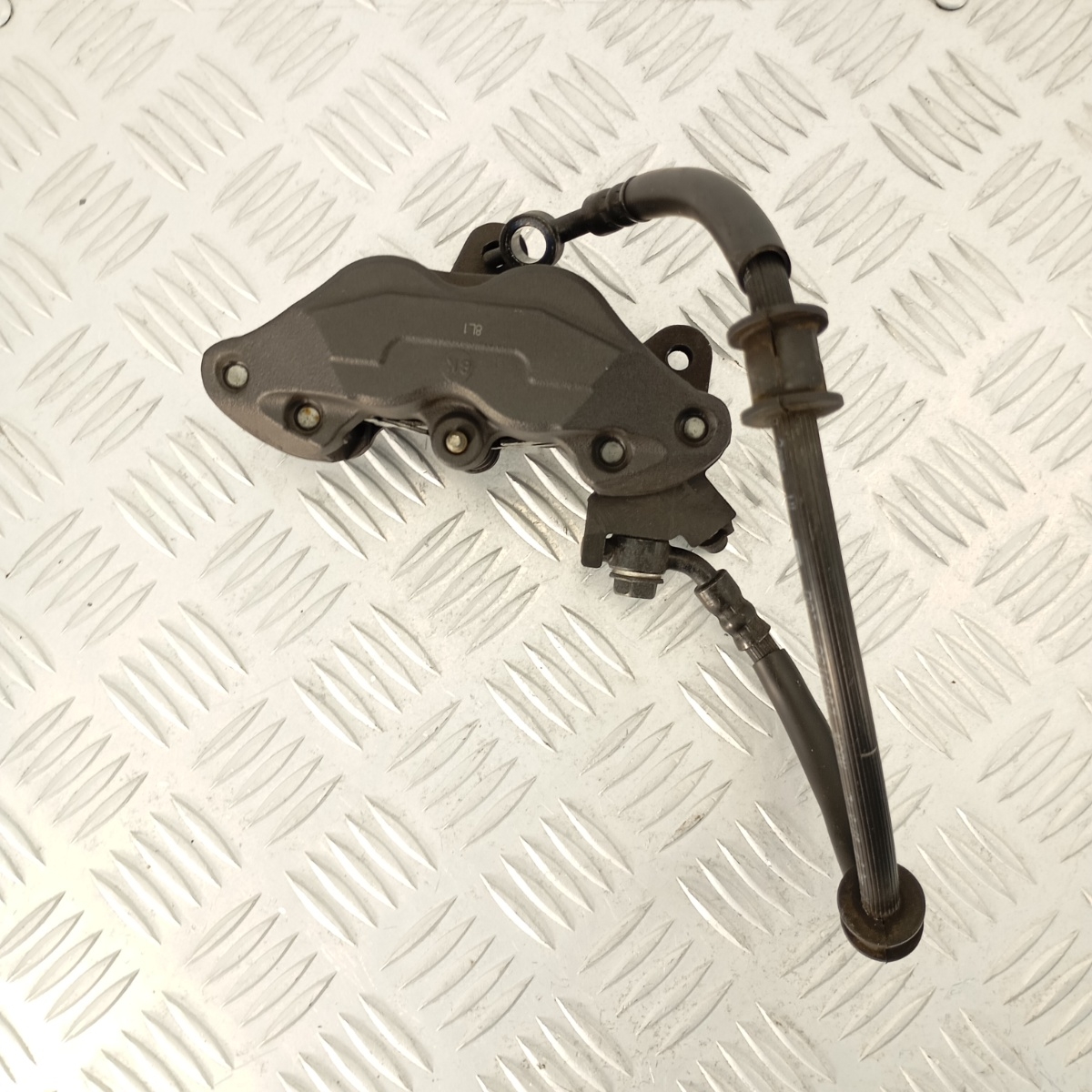 Pinza freno anteriore sinistra Nissin originale, codice stampigliato 8L1, smontata da Kawasaki Z900. Questo ricambio è completo, include le pastiglie freno montate e il tubo freno originale. Si tratta di un sistema a due pistoncini con montaggio radiale, progettato per una frenata progressiva e controllata sia in condizioni di guida sportiva che stradale.Costruita in alluminio ad alta resistenza, offre una perfetta compatibilità con il sistema originale Kawasaki e si monta direttamente, senza necessità di adattamenti.Ricambio noto come pinza Kawasaki Z900 sinistra, pinza Nissin 8L1, pinza freno anteriore SX, pinza moto Z800, pinza Ninja 650 sinistra, pinza sinistra Z1000, pinza completa Nissin SX, sistema frenante radiale Z900, pinza OEM 8L1.