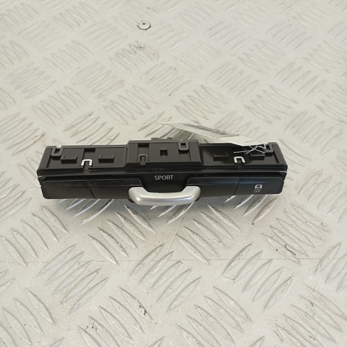 Pulsantiera modalità guida originale BMW, codice OEM 6131932394005. Ricambio smontato da BMW Serie 2 F45 Active Tourer anno 2015, perfettamente funzionante e in buone condizioni estetiche. Questo modulo di comando, prodotto da BMW Group in Romania, è dotato dei pulsanti per la selezione delle modalità di guida “SPORT” e “ECO PRO”, oltre ai tasti per la disattivazione del controllo stabilità (DSC/ESP) e dello Start&Stop. Il design con finitura nera opaca e inserto decorativo argento è compatibile con numerosi modelli BMW e MINI, integrandosi perfettamente nella console centrale.Ricambio noto come: pulsantiera driving experience, selettore modalità guida, modulo pulsanti Sport Eco Pro, comando modalità di guida, e conosciuto a livello internazionale come: driving mode switch, sport eco pro selector, BMW driving experience control, driving mode panel.