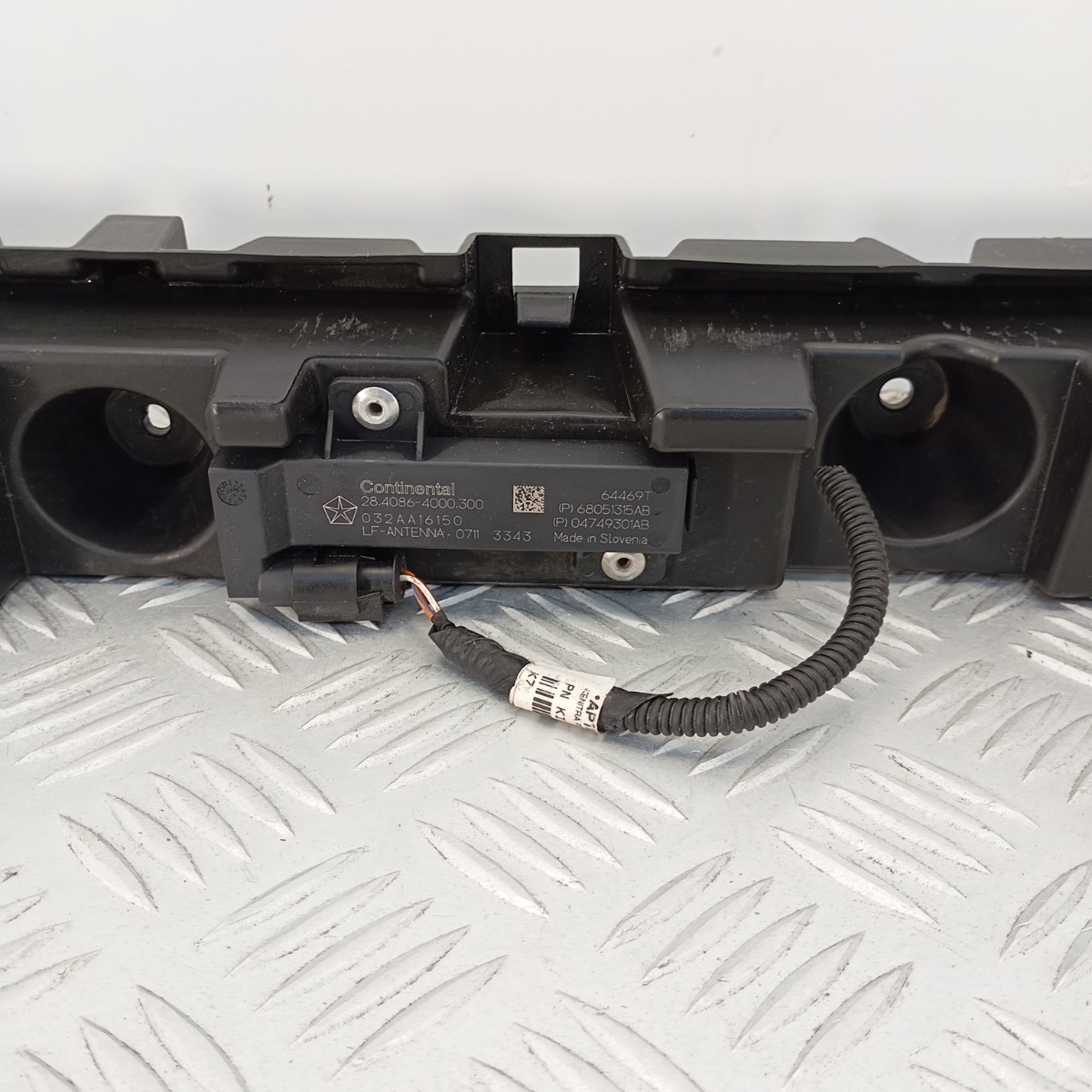 Rinforzo centrale originale per paraurti posteriore Alfa Romeo Stelvio, dotato di modulo antenna a bassa frequenza (LF-ANTENNA) integrato, prodotto da Continental. Questo componente svolge una doppia funzione: supporto strutturale per il paraurti e supporto elettronico per il sistema Keyless Go del veicolo.Realizzato in polipropilene rinforzato con talco (PP TD30), garantisce resistenza meccanica, durabilità e integrazione precisa con la carrozzeria. Il modulo elettronico è completo di connettore originale e siglature produttore.Ricambio noto come: rinforzo paraurti centrale Stelvio, staffa centrale paraurti posteriore, supporto sensori paraurti, supporto centrale con antenna Keyless, rinforzo scudo posteriore Stelvio.È conosciuto a livello internazionale come: rear bumper reinforcement, central bumper bracket with LF antenna, rear sensor support bar, Keyless Go antenna holder, rear antenna mount.