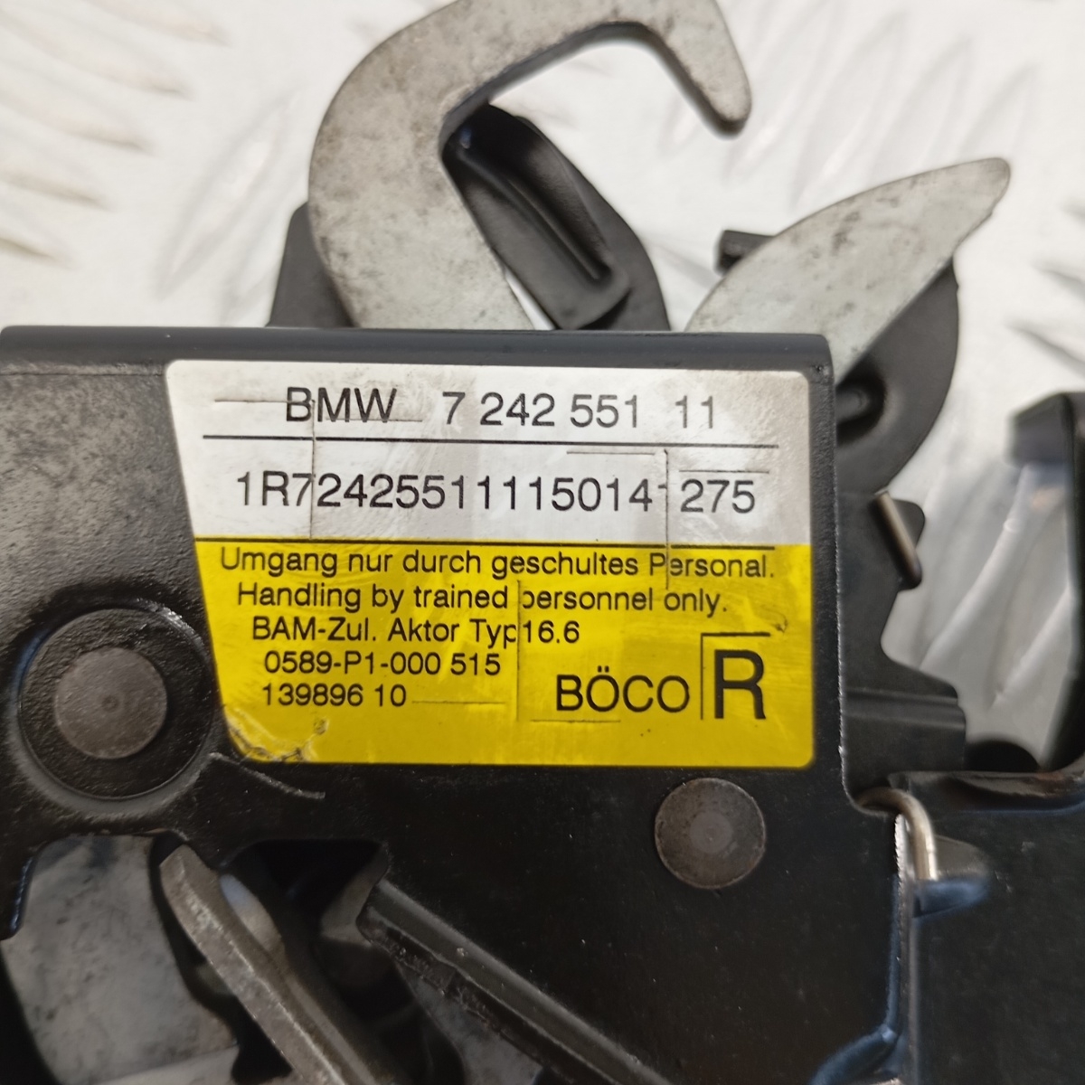 Serratura cofano anteriore destra originale BMW, smontata da BMW Serie 2 F45 Active Tourer. Meccanismo completo con attuatore elettronico integrato, dotato di connettore giallo a 2 pin e molla di ritorno. Serratura originale BÖCO, fornitore OEM BMW, progettata per garantire sicurezza, affidabilità e durata nel tempo. Ideale per sostituzione diretta senza modifiche.