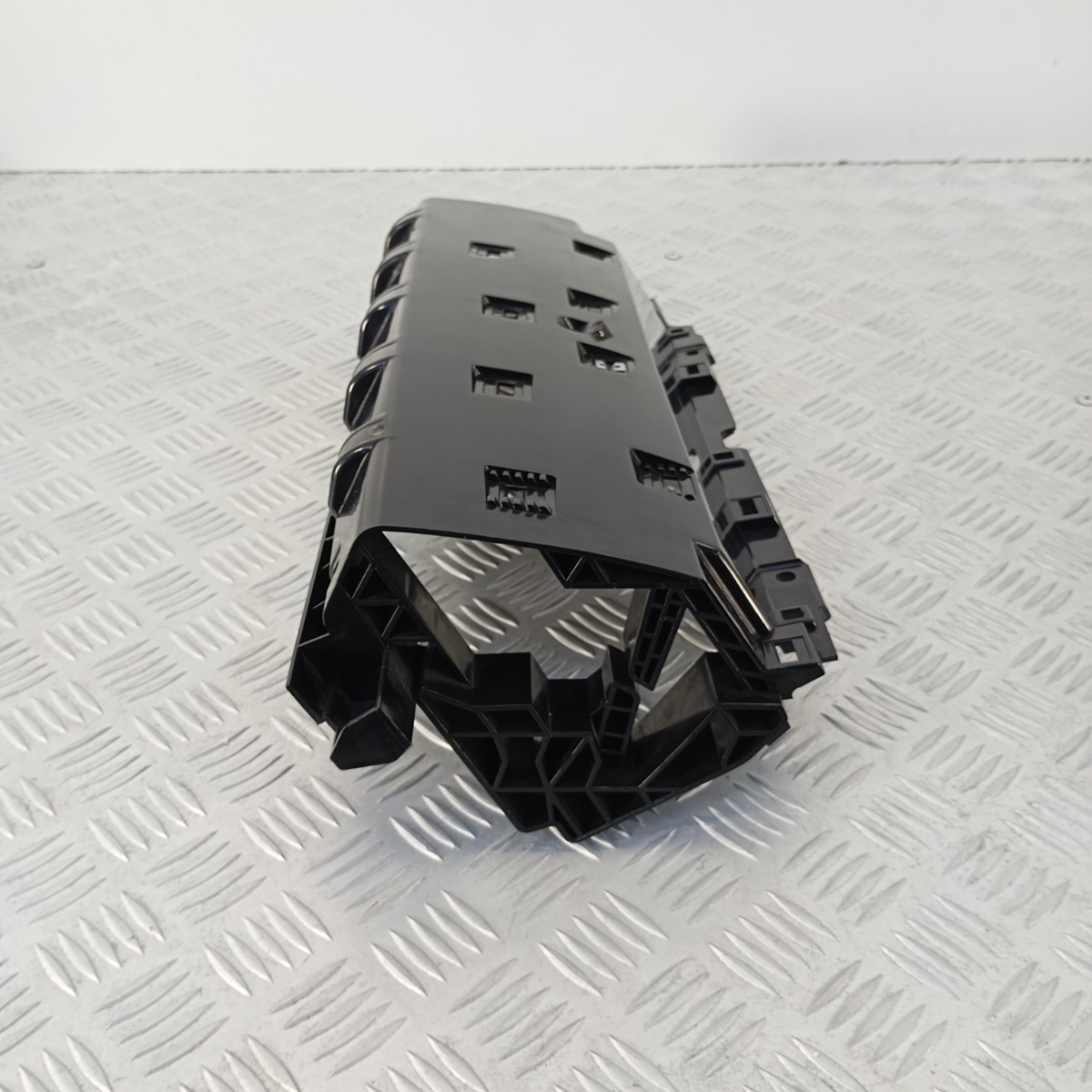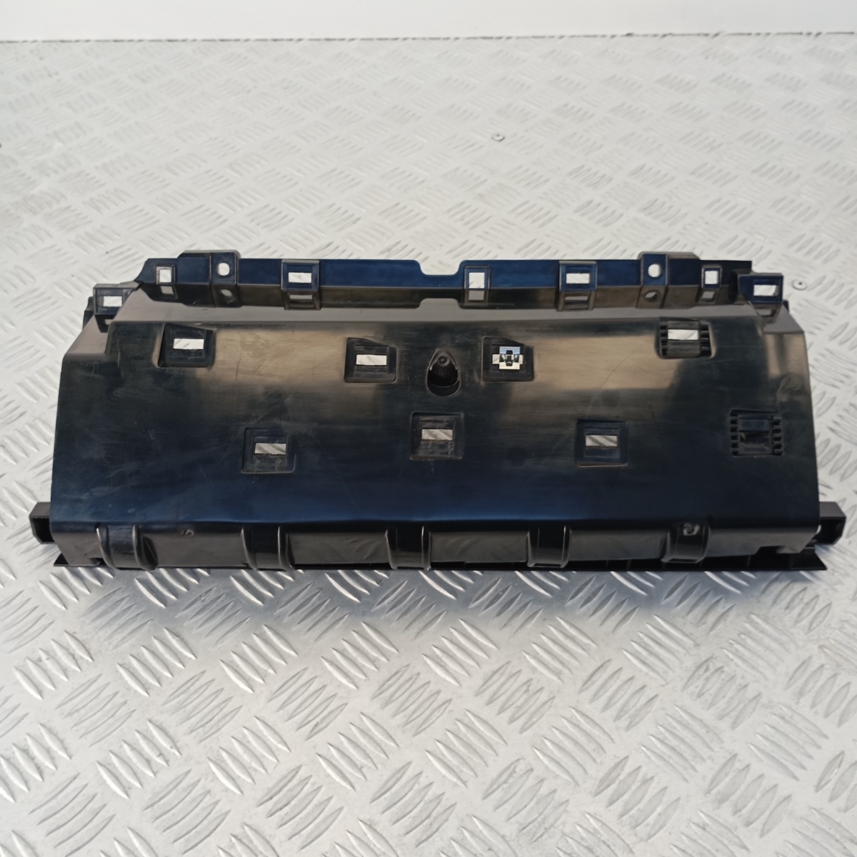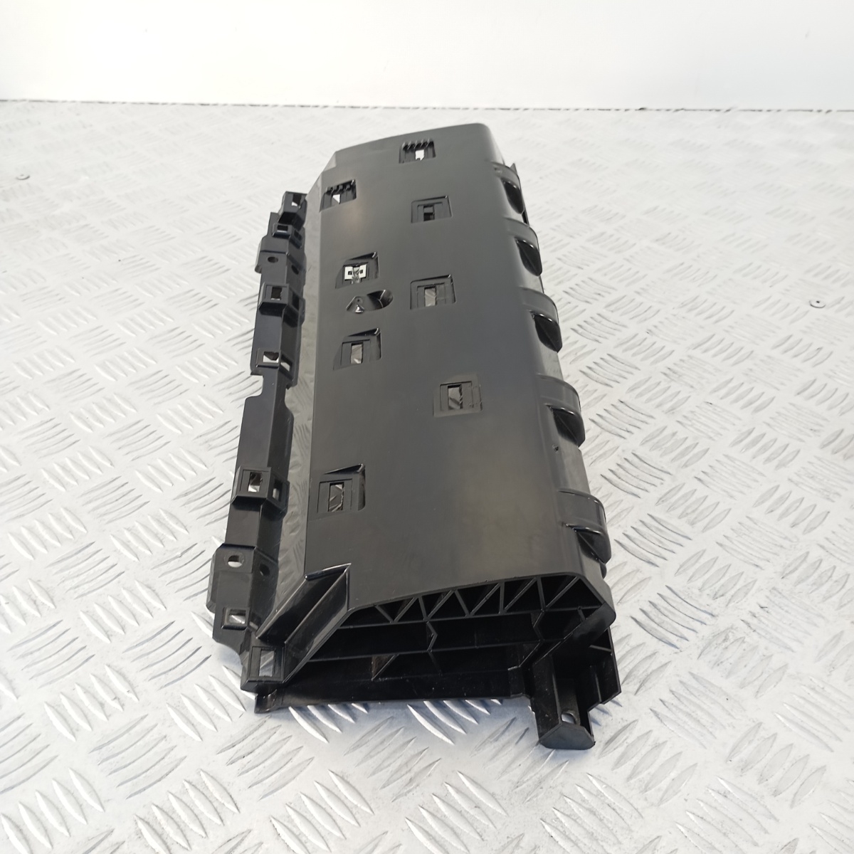 Staffa Cruscotto Land Rover Range Rover Sport L494 smontato da un veicolo equipaggiato con volante a sinistra (LHD), questo alloggiamento plancia è un componente strutturale essenziale per l`interno del veicolo. Funge da supporto cruscotto e scatola di contenimento per vari moduli e componenti elettronici o meccanici all`interno della plancia centrale, garantendo il corretto posizionamento e fissaggio. È una struttura interna plancia in plastica robusta, progettata per ospitare l`elettronica o altri sistemi che si trovano dietro le finiture decorative. Questo alloggiamento modulo plancia è un ricambio originale Land Rover.Ricambio noto anche come alloggiamento plancia Land Rover, supporto cruscotto LHD, scatola cruscotto, struttura interna plancia, contenitore modulo plancia, alloggiamento modulo Land Rover, struttura cruscotto guida a sinistra, guscio cruscotto Land Rover.
