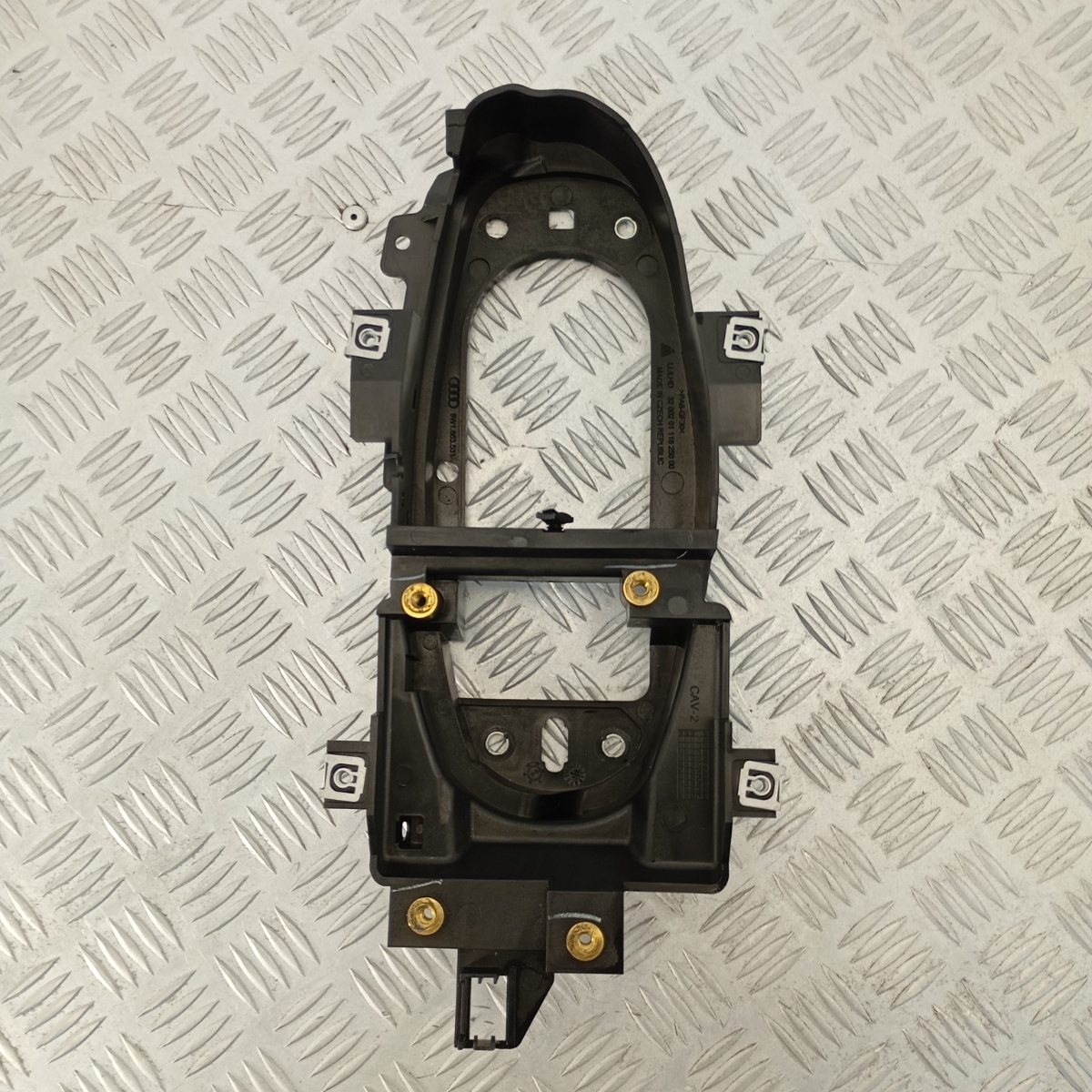 Supporto Tunnel Centrale Audi A4 A5 B9 , telaio interno per la console centrale, codice OEM 8W1.863.531.A, per i modelli Audi A4 B9 e Audi A5 B9. Questa pezzo strutturale in plastica robusta è un componente essenziale dell`assemblaggio della console centrale, fungendo da base per il montaggio del modulo MMI, del cambio di velocità e di altri elementi di controllo. Funziona come una sottoplancia console centrale o base console cambio. Fabbricata in materiale durevole PA6-GF30 in Repubblica Ceca, conforme agli standard Audi, la parte assicura stabilità e una vestibilità precisa. È destinata ai veicoli con guida a sinistra (LHD), ed è anche conosciuta come intelaiatura console o plastica interna console.Ricambio noto come: telaio console centrale, struttura consolle, supporto MMI Audi, base cambio marce, scheletro console, cornice interna console, supporto centrale abitacolo, sottoplancia console centrale, supporto tunnel centrale, base console cambio, intelaiatura console, plastica interna console, ricambi console Audi A4 B9, parti interne Audi A5 B9, accessori interni console Audi, supporto radio/navigatore console, staffa console centrale, base comandi MMI, telaio supporto MMI Audi A4 B9, struttura interna cambio Audi A5 B9; e conosciuto a livello internazionale sotto forma di: center console frame, MMI support bracket, gear shifter base, console structure, central console bracket, interior console support, central console mounting bracket, dashboard console support, interior console housing, console base frame, shift console bracket, MMI control unit bracket, gear shift console support.