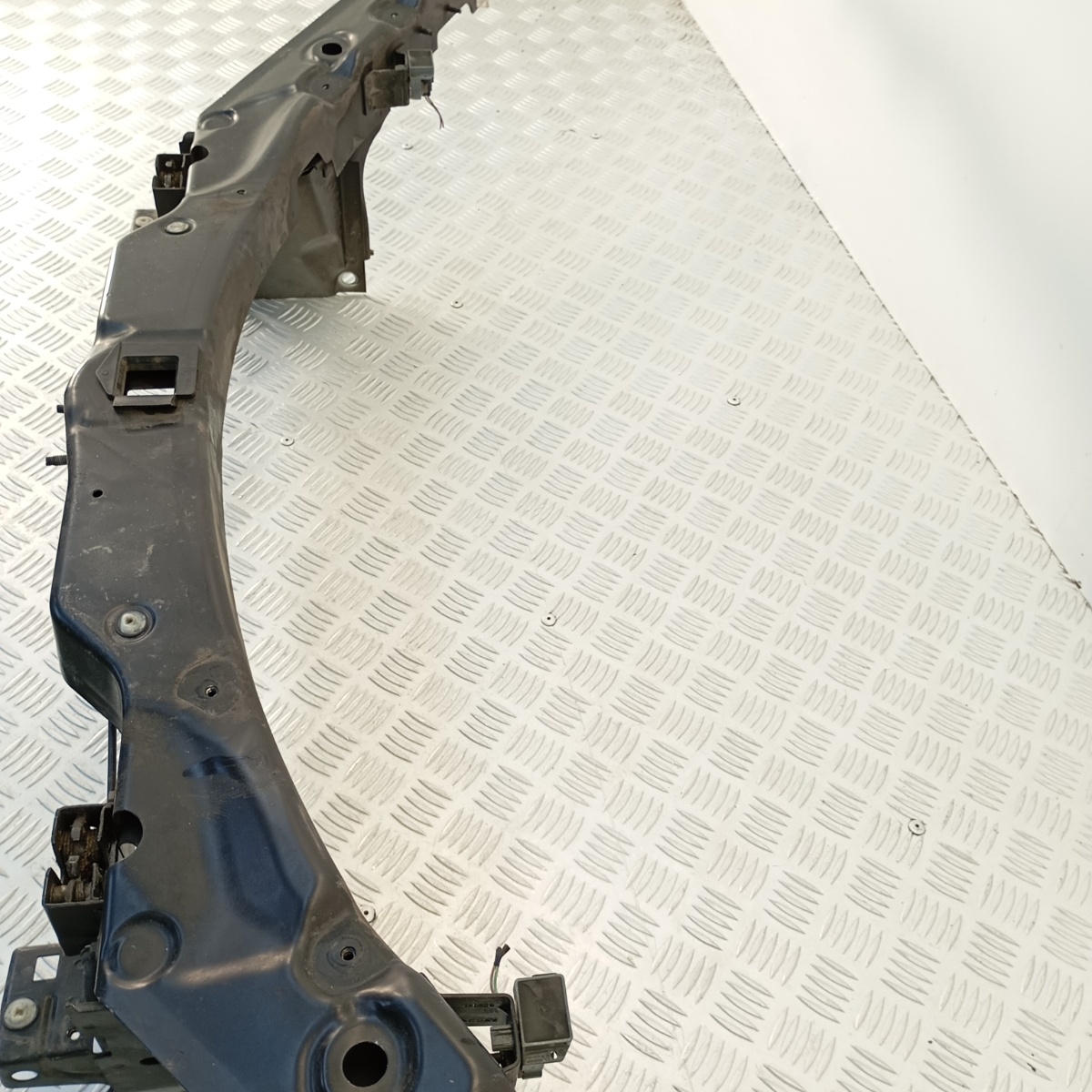 Traversa Anteriore Superiore Jaguar , smontata da una Jaguar XF Berlina del 2011. Questo supporto fari è una robusta traversa superiore radiatore o ponte anteriore superiore, fondamentale per l`integrità strutturale del frontale del veicolo. È progettata per ospitare e sostenere i fari anteriori (in particolare quelli con tecnologia HID/Xenon, come indicato dall`etichetta Hella e dal riferimento “DANGER HIGH VOLTAGE”), il radiatore e altre componenti ausiliarie. Funge da rinforzo anteriore superiore e assicura il corretto allineamento di questi elementi.Ricambio noto come supporto fari Jaguar XF, traversa superiore radiatore Jaguar, ponte anteriore Jaguar XF, rinforzo anteriore superiore, struttura frontale Jaguar XF, supporto fari Xenon Jaguar, traversa Jaguar XF anteriore.