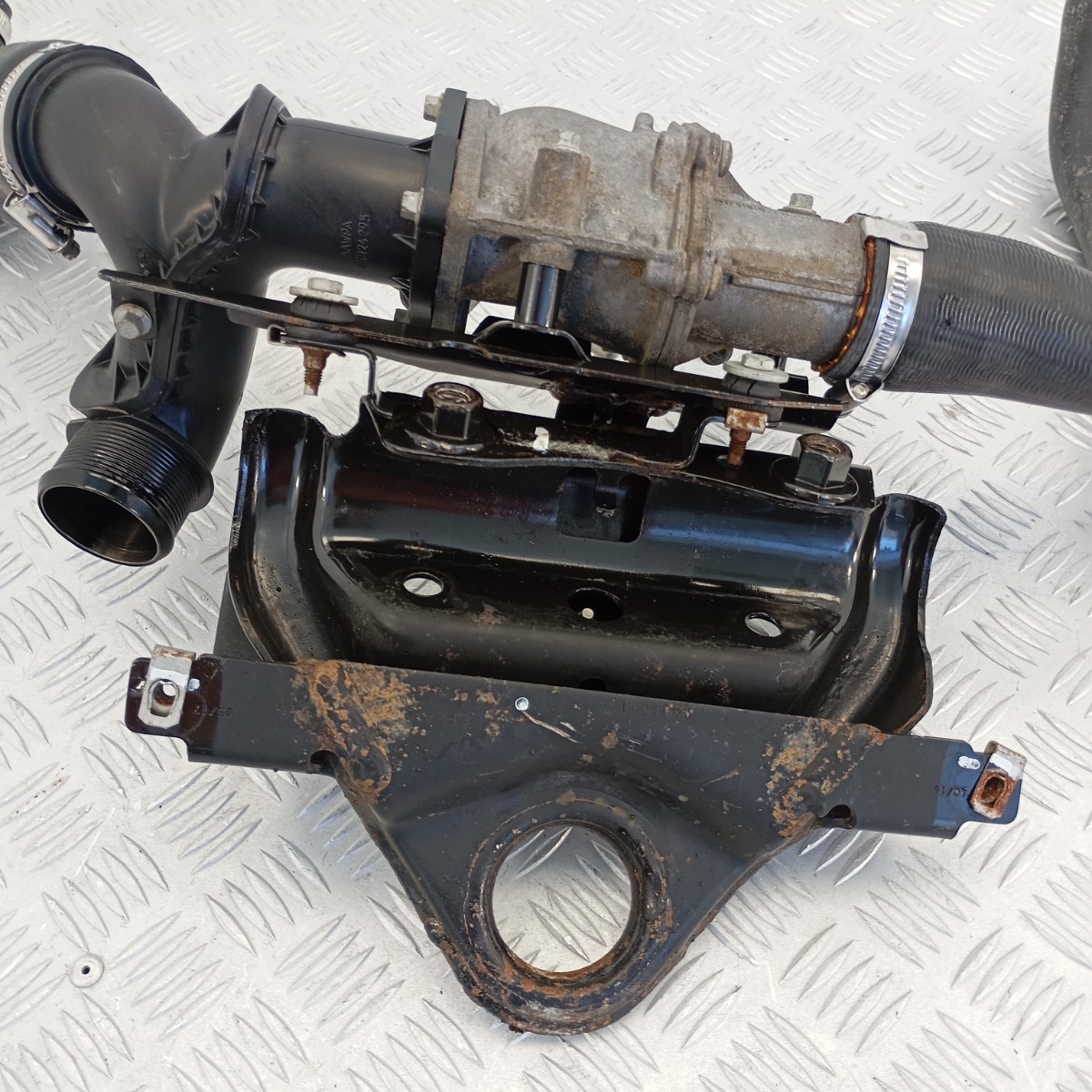 Valvola EGR originale Land Rover con raffreddatore gas di scarico, completa di staffa metallica e tubazioni. Smontata da veicoli equipaggiati con motore diesel 3.0 TD6/SDV6, garantisce il corretto ricircolo dei gas e la riduzione delle emissioni nocive, migliorando l’efficienza complessiva del propulsore. Modulo EGR Land Rover, scambiatore gas scarico con valvola, cooler EGR, valvola EGR con attuatore elettronico. EGR valve with cooler, exhaust gas recirculation cooler, EGR heat exchanger.